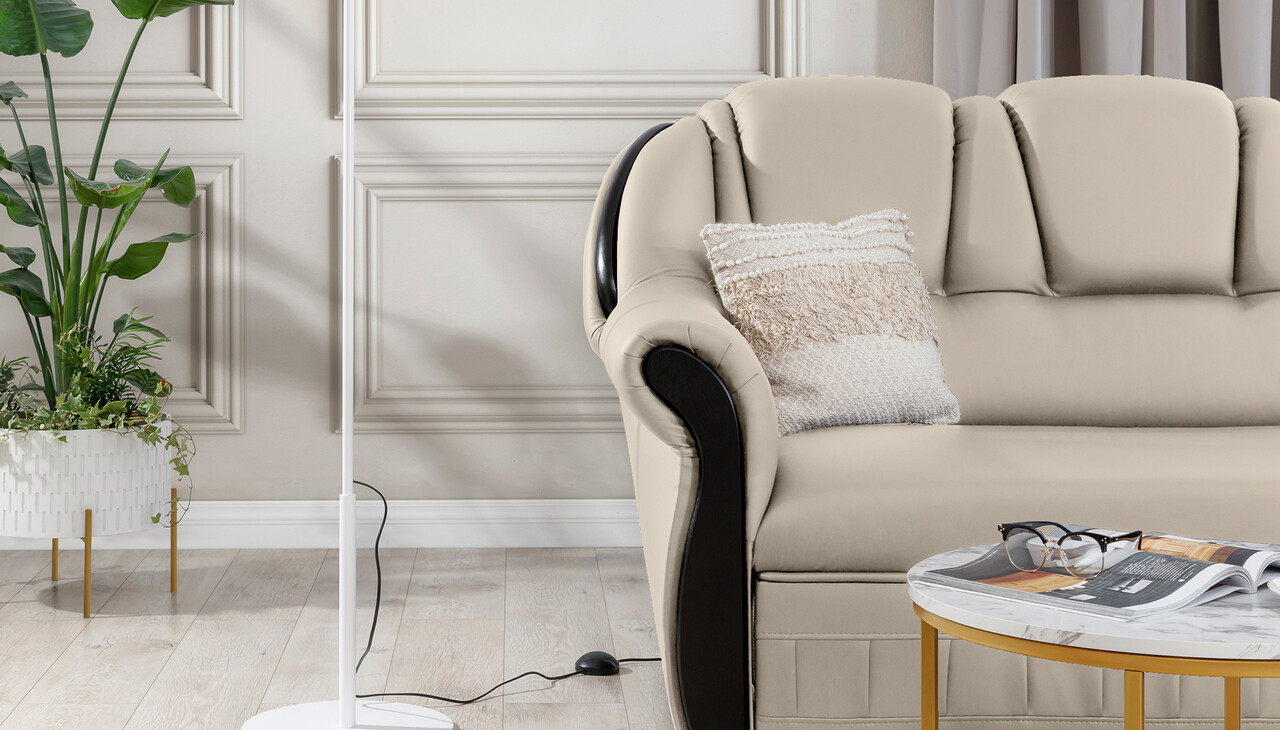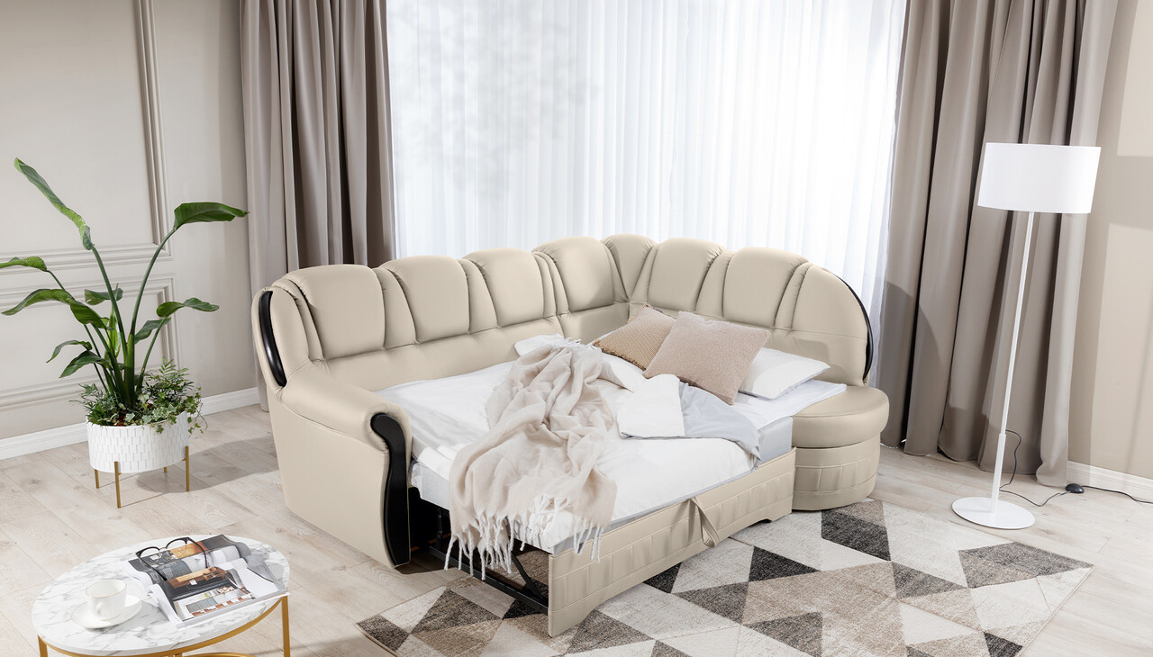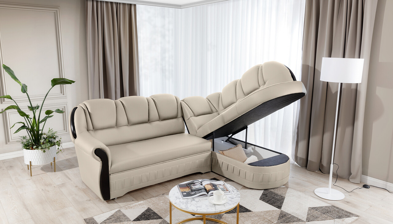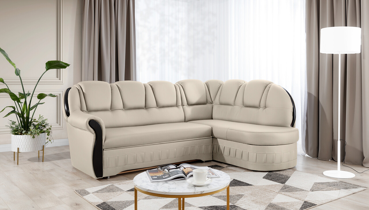 Coltar extensibil dreapta 3 locuri ELTAP, L-056, Lord, 243x180x112 cm, lemn/poliester, crem/negru