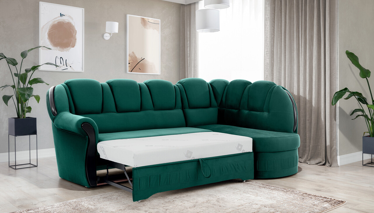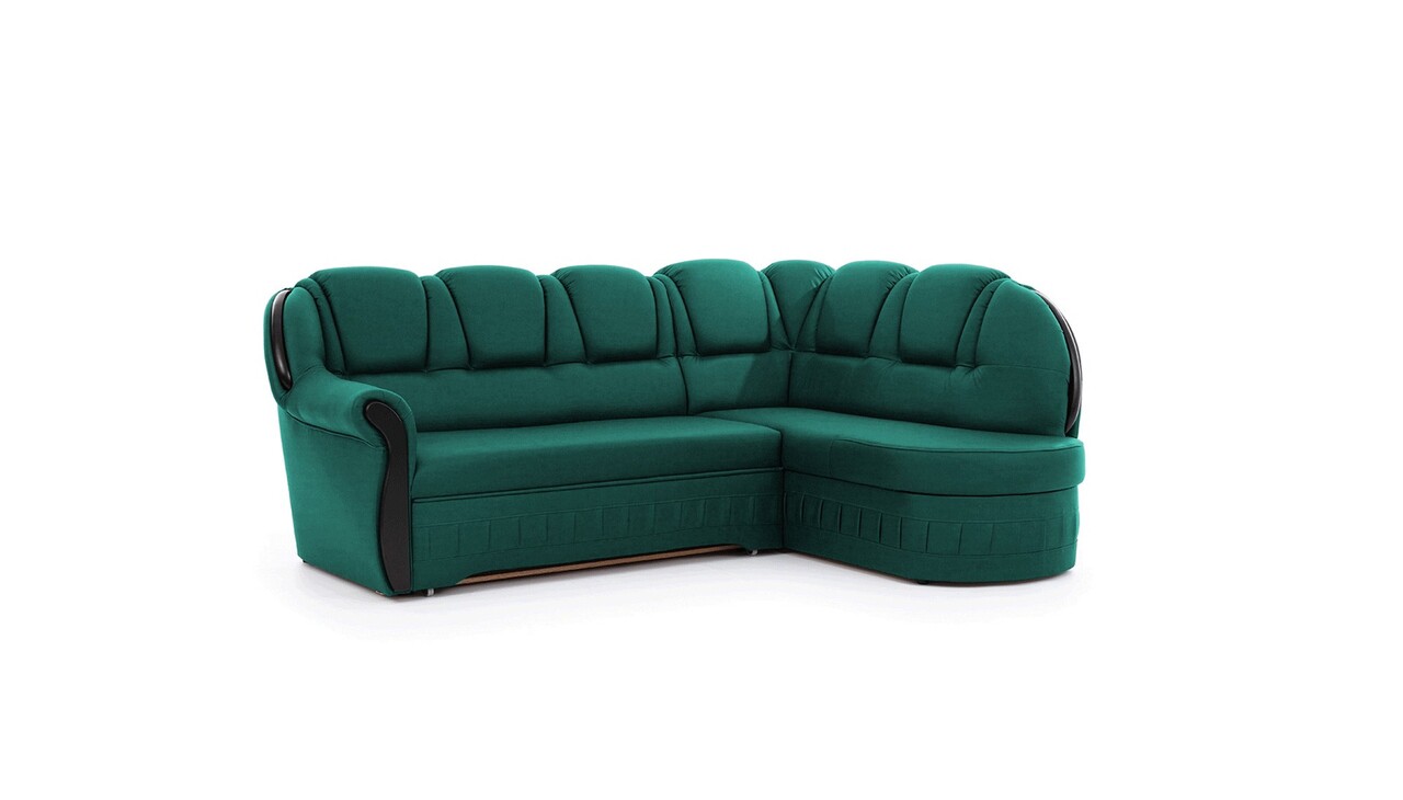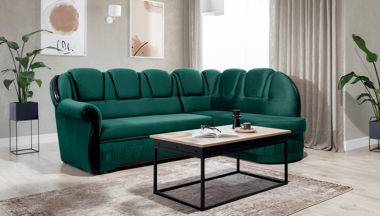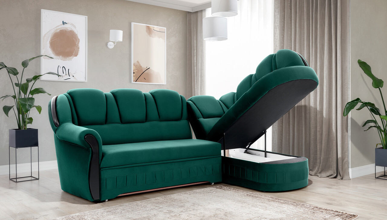 Coltar extensibil dreapta 3 locuri ELTAP, L-071, Lord, 243x180x112 cm, lemn/poliester, verde inchis/negru