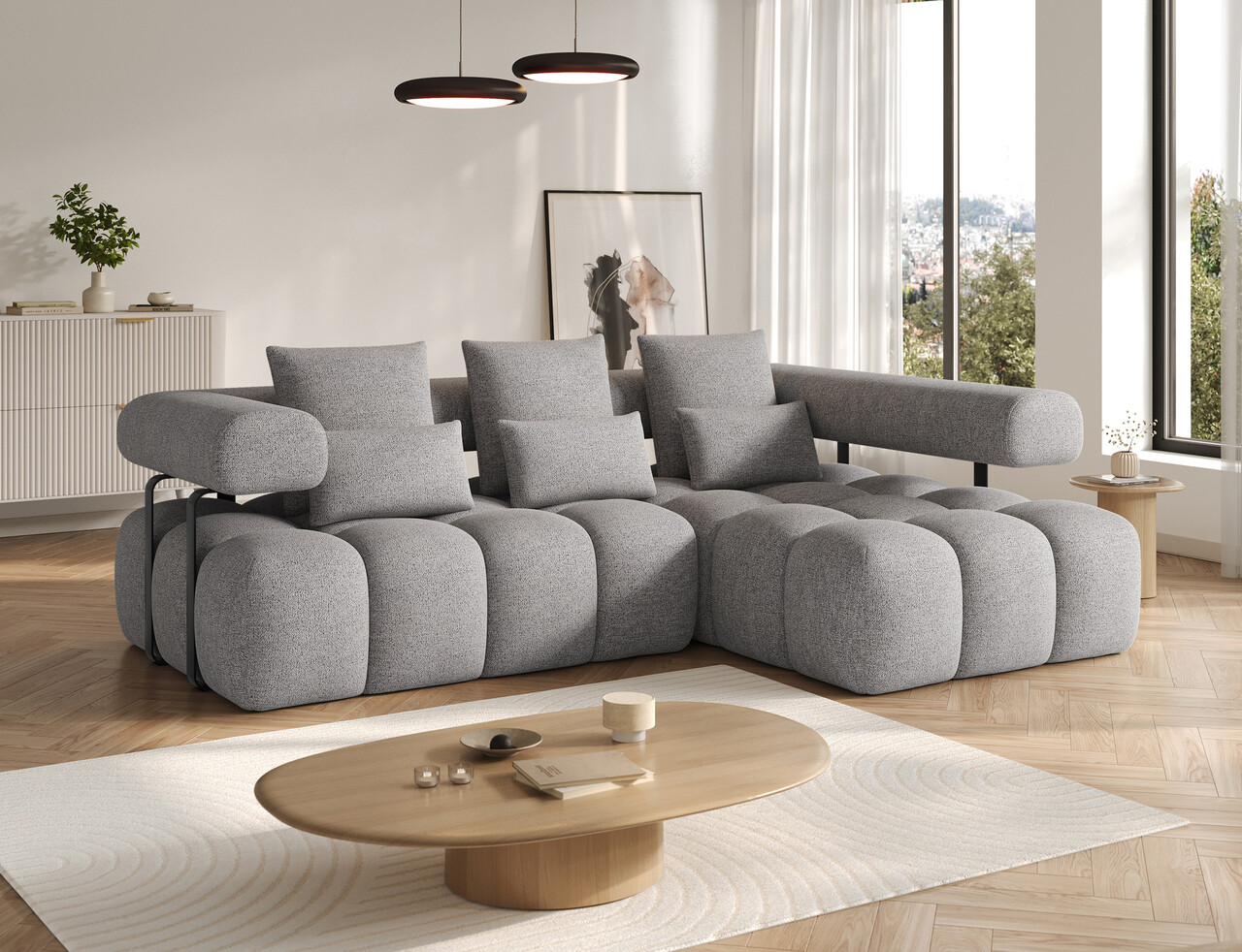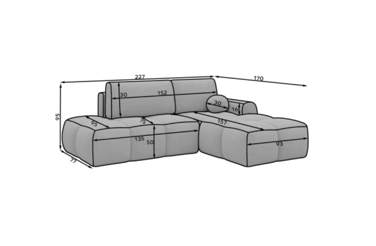Coltar extensibil dreapta 3 locuri ELTAP, Levvi, 260x184x102 cm, lemn/poliester, gri
