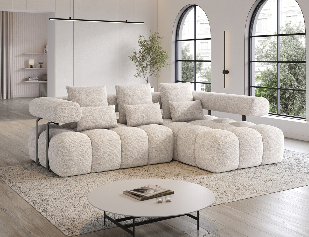Coltar extensibil dreapta 3 locuri ELTAP, Levvi, 260x184x102 cm, lemn/poliester, bej