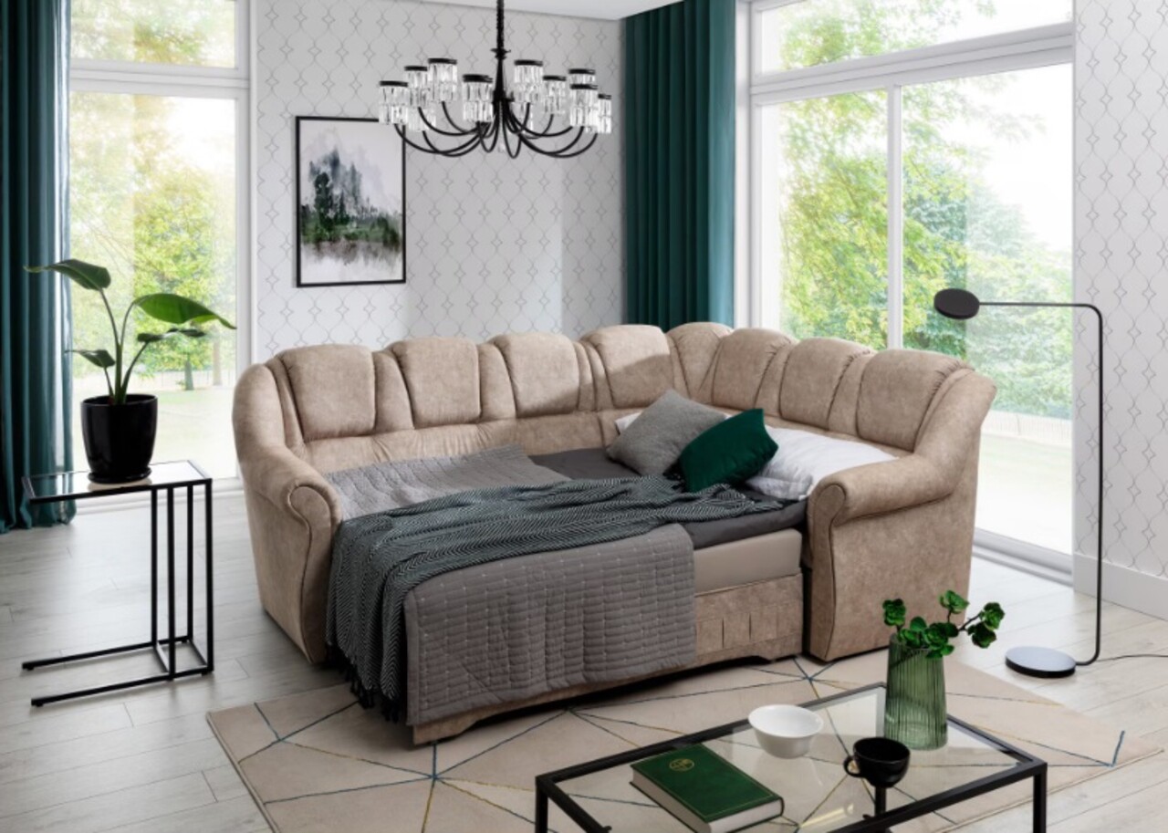 Coltar extensibil dreapta 3 locuri ELTAP, LII-096, Lord II, 243x195x112 cm, lemn/poliester, gri inchis