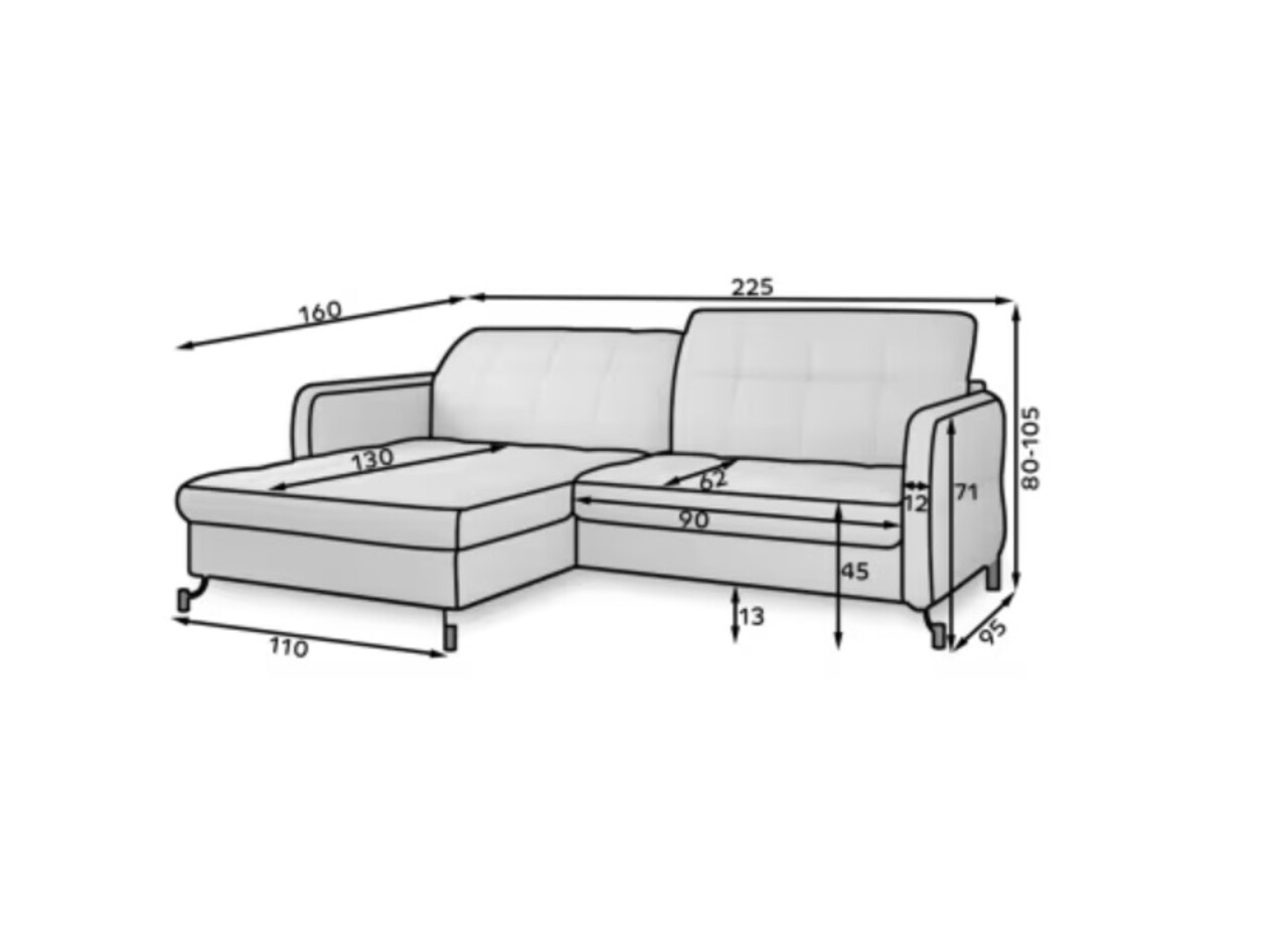 Coltar extensibil dreapta 3 locuri ELTAP, Lore-20, Lorelle, 225x160x105 cm, lemn/poliester, gri