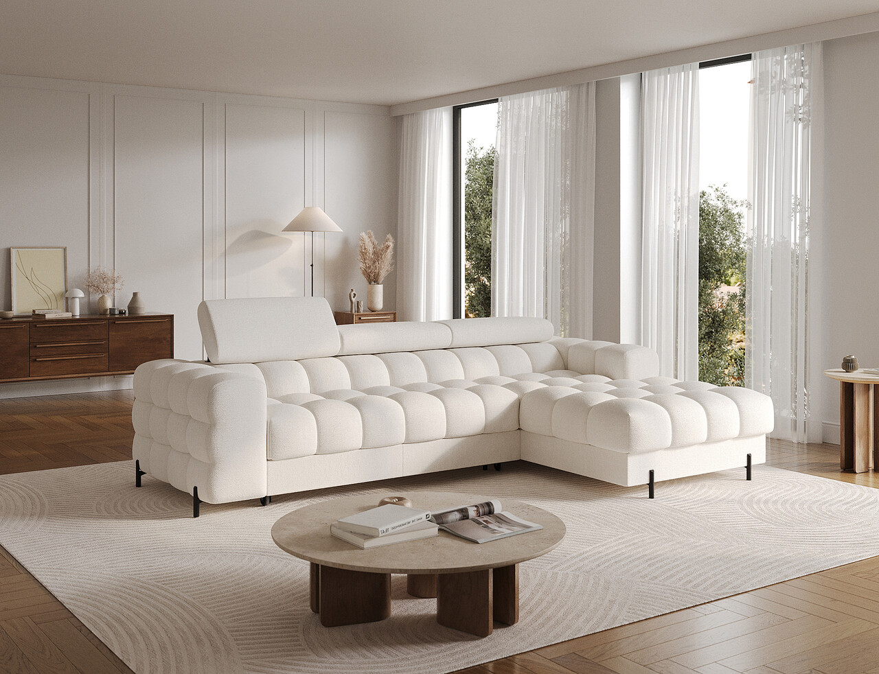 Coltar extensibil dreapta 3 locuri ELTAP, RT-01AMO, Felro, 285x181x93 cm, lemn/poliester, alb
