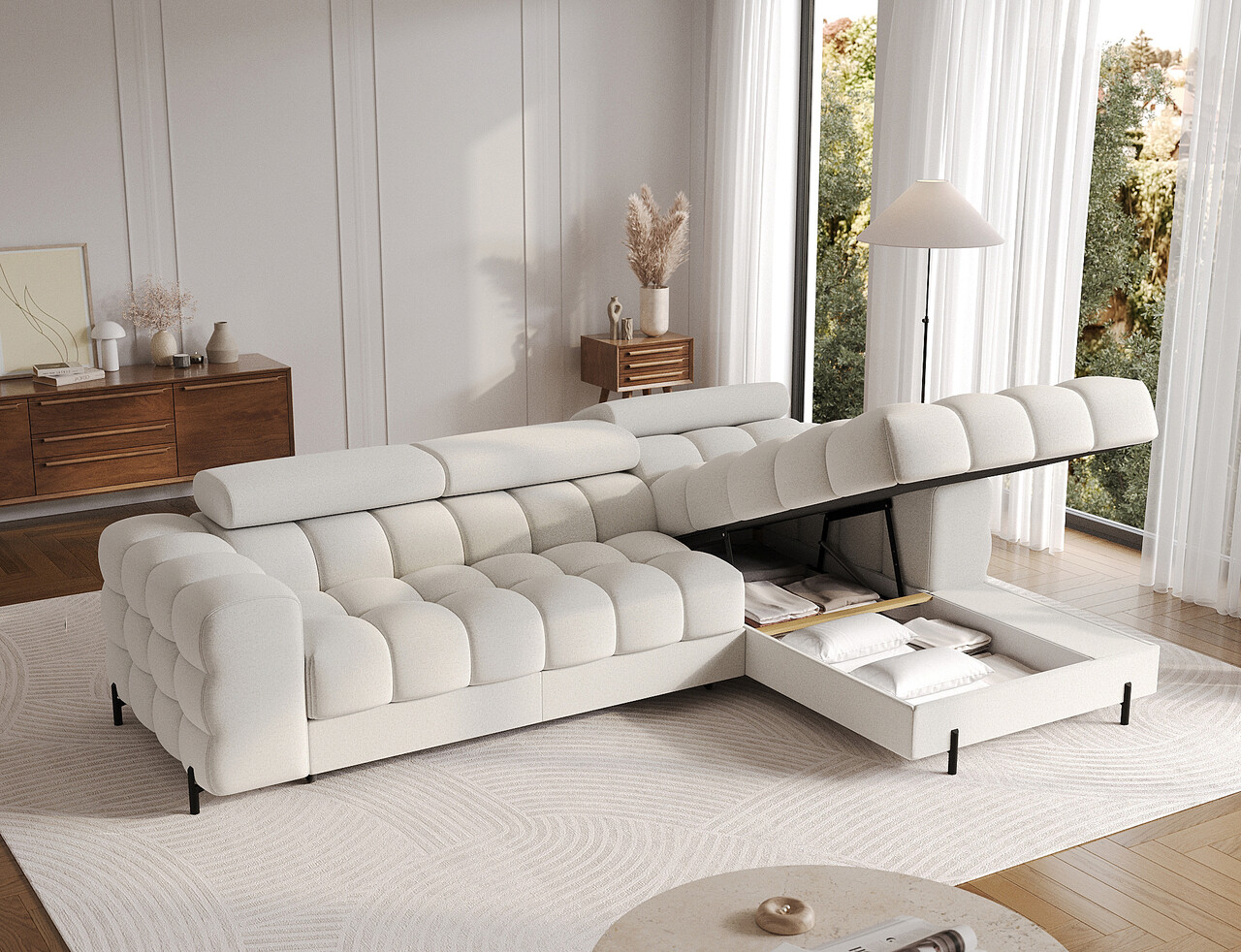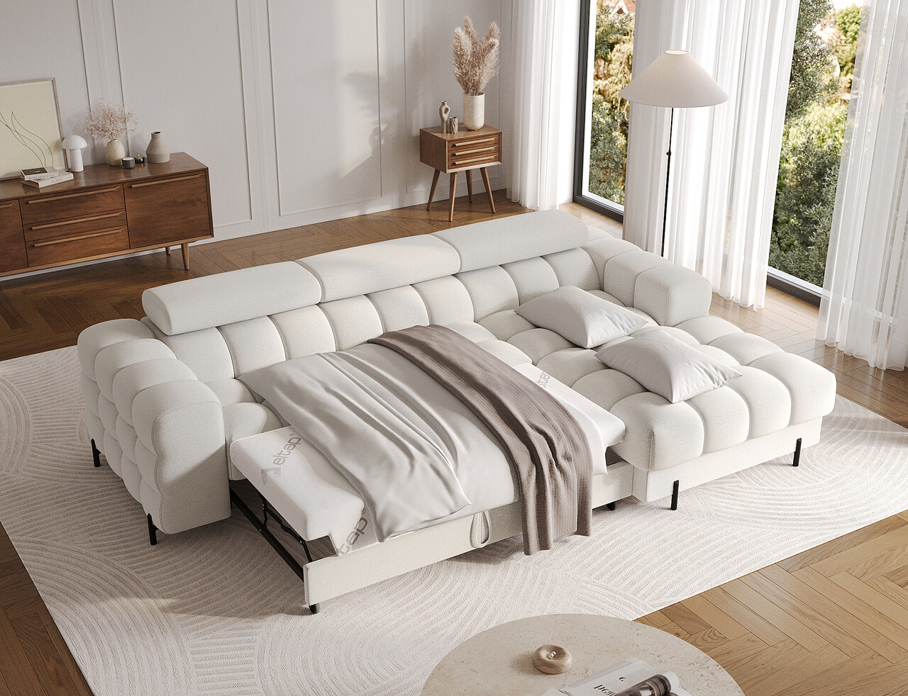 Coltar extensibil dreapta 3 locuri ELTAP, RT-01ROY, Felro, 285x181x93 cm, lemn/poliester, alb