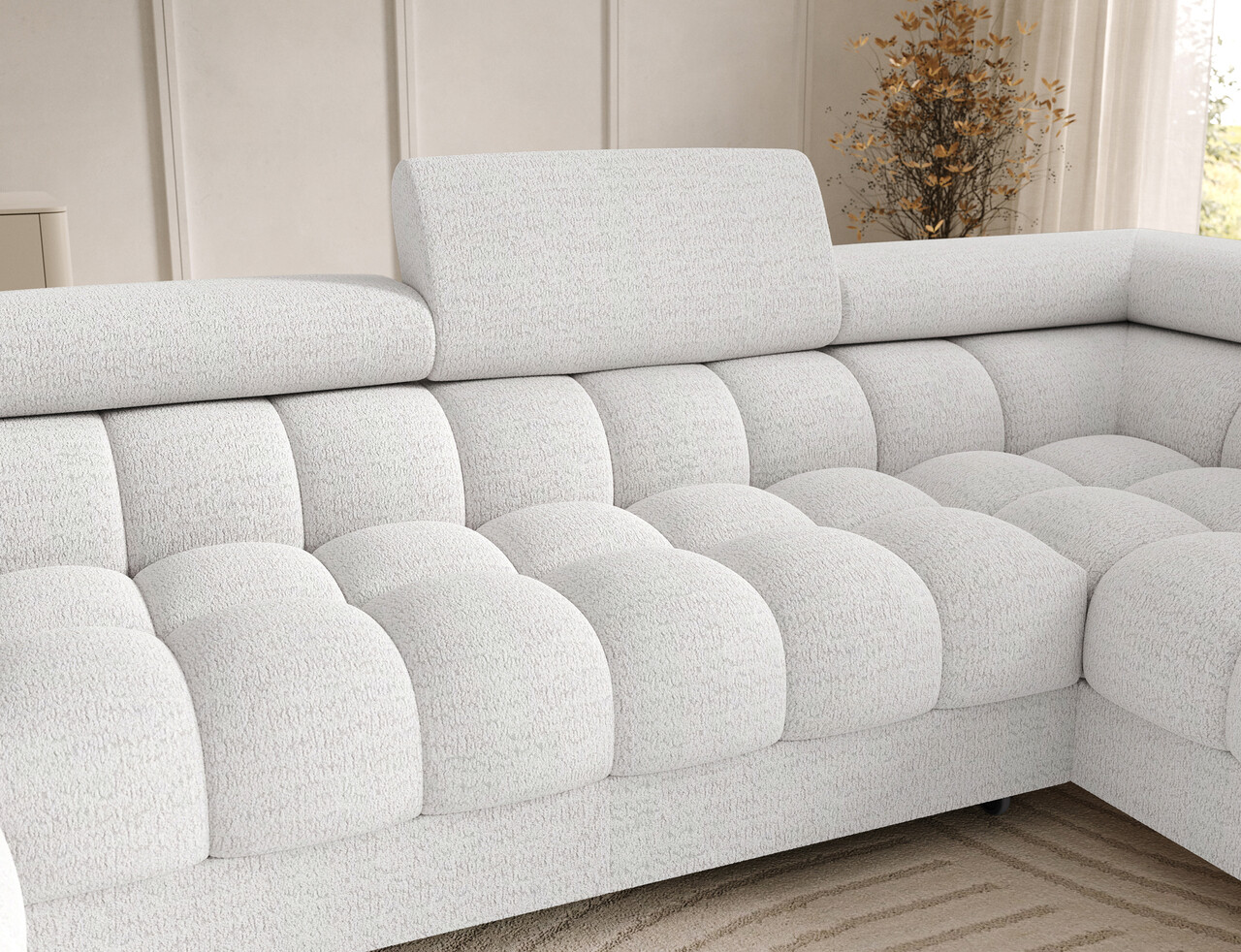 Coltar extensibil dreapta 3 locuri ELTAP, RT-01ROY, Feraria, 358x202x93 cm, lemn/poliester, alb