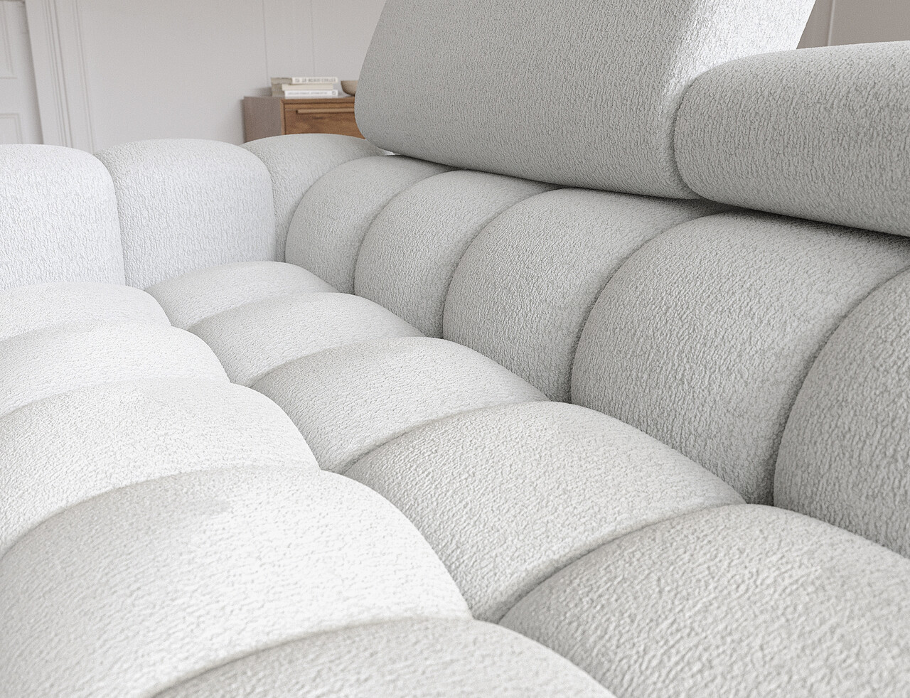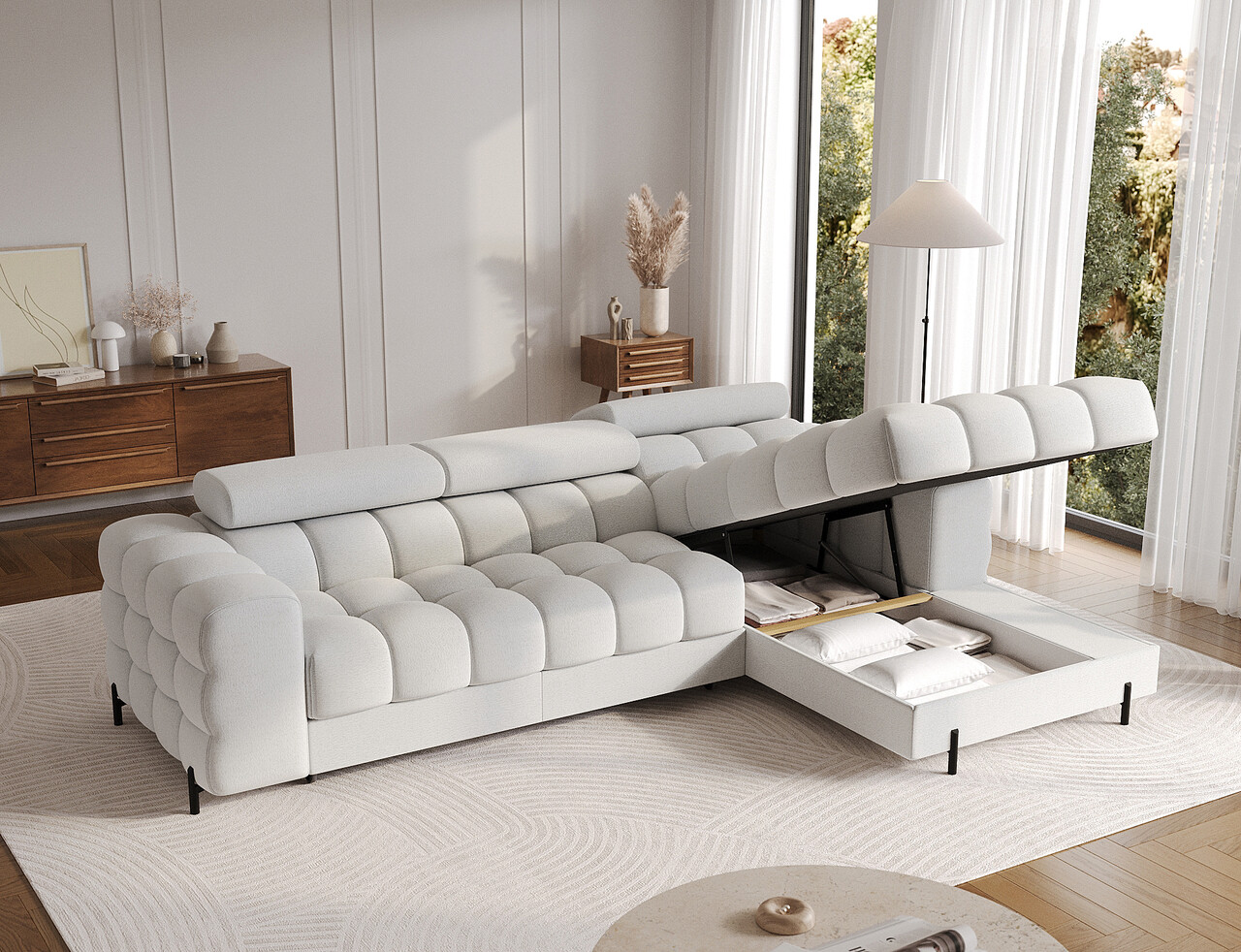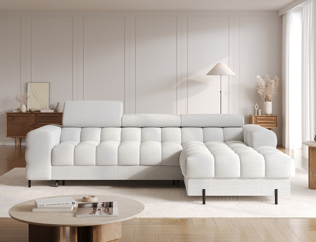 Coltar extensibil dreapta 3 locuri ELTAP, RT-03ROY, Felro, 285x181x93 cm, lemn/poliester, gri deschis