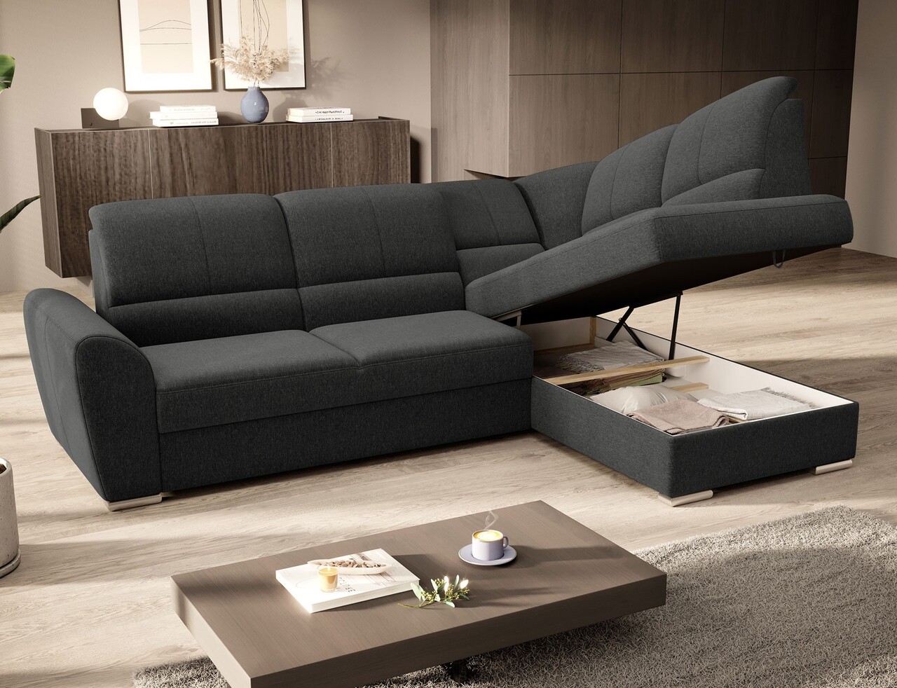Coltar extensibil dreapta 3 locuri ELTAP, RT-04FL, Siber, 270x186x93 cm, lemn/poliester, gri inchis