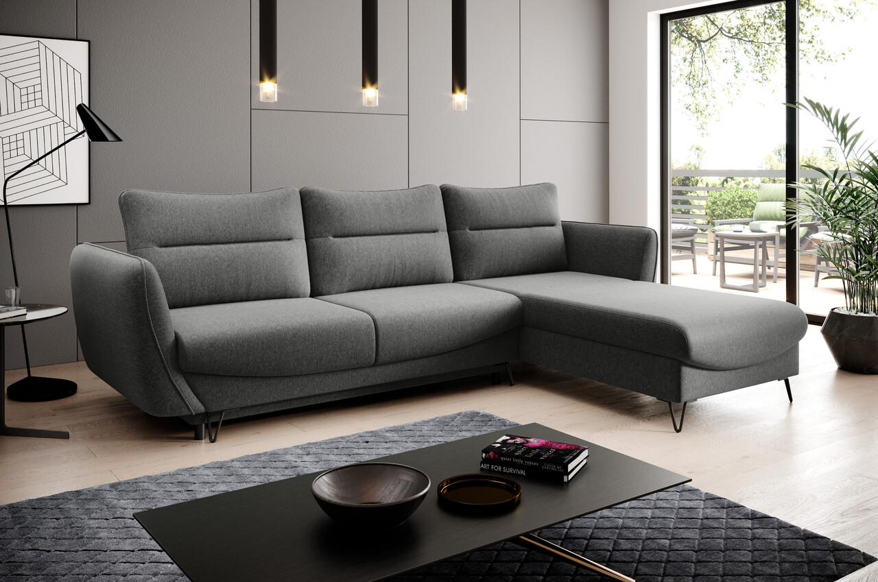 Coltar extensibil dreapta 3 locuri ELTAP, RT-04FL, Silva, 276x201x100 cm, lemn/poliester, gri