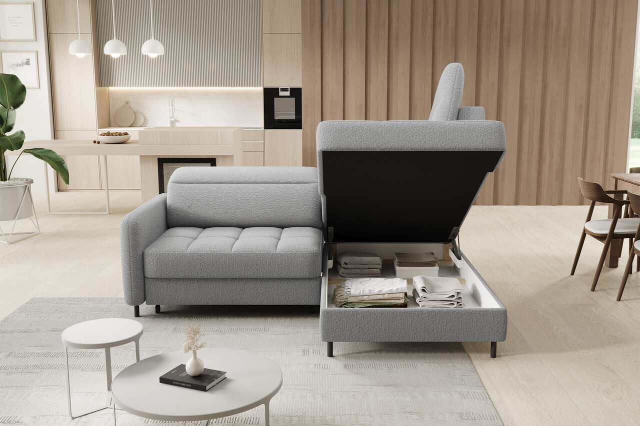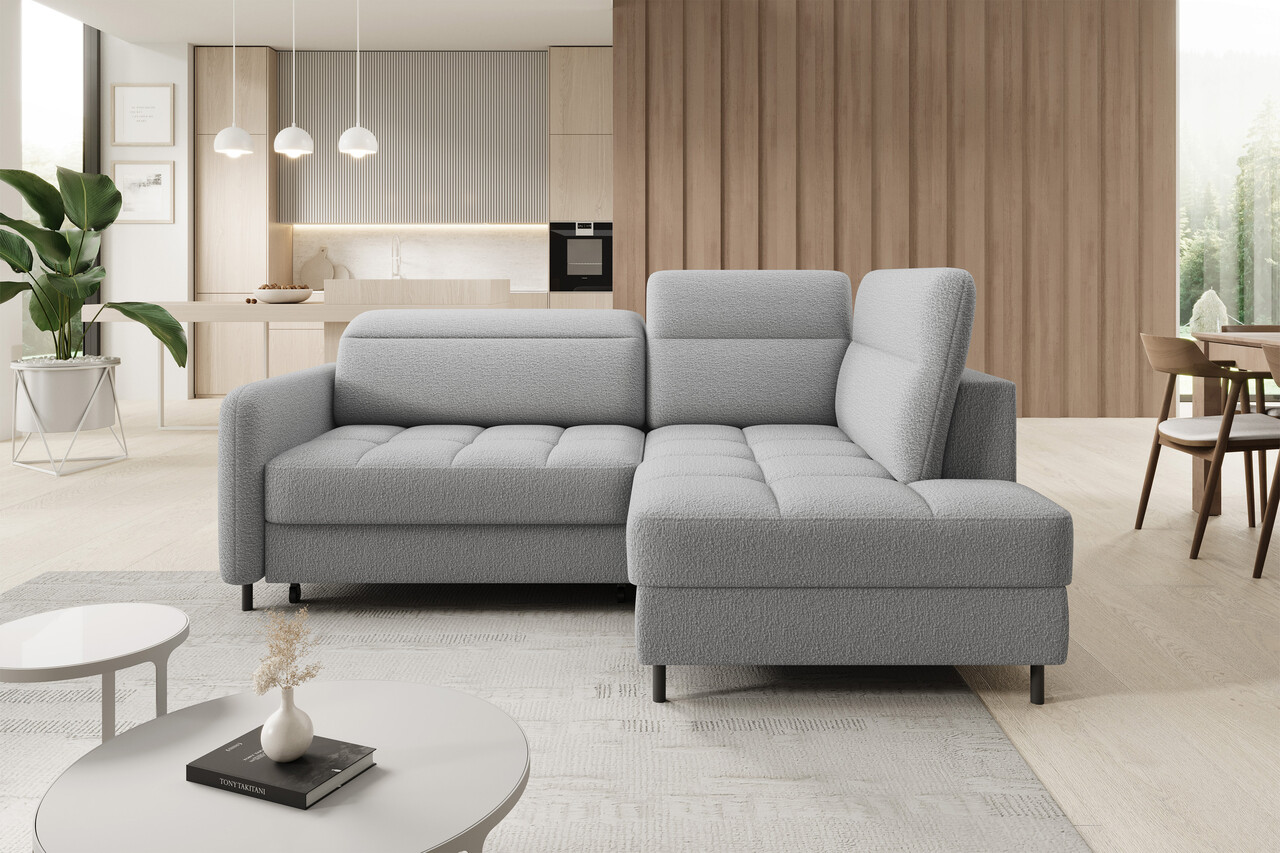 Coltar extensibil dreapta 3 locuri ELTAP, RT-04ROY, Barea, 208x160x100 cm, lemn/poliester, gri deschis