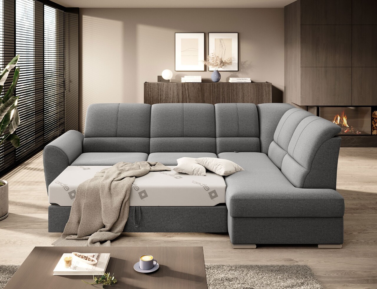 Coltar extensibil dreapta 3 locuri ELTAP, RT-05GO, Siber, 270x186x93 cm, lemn/poliester, gri