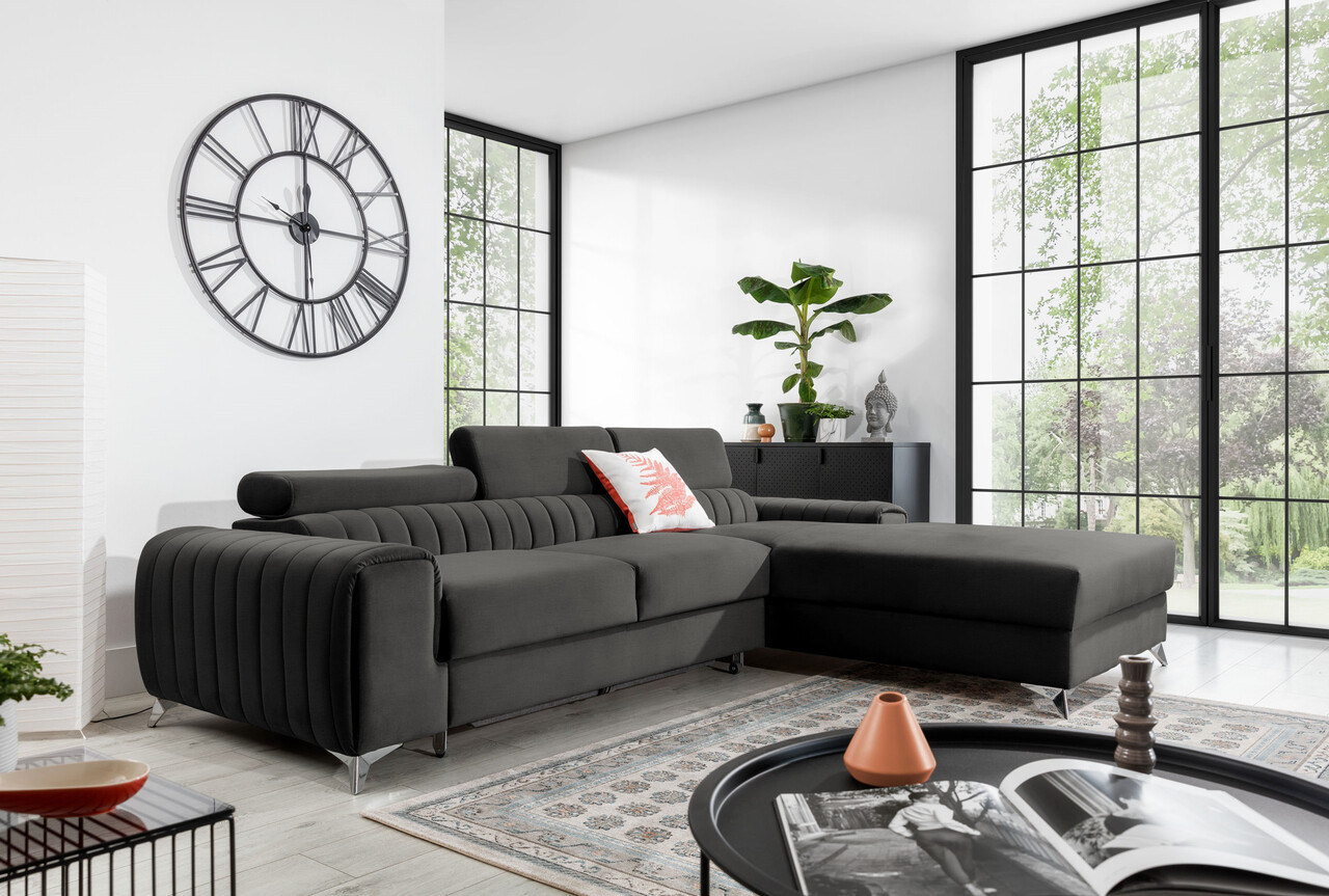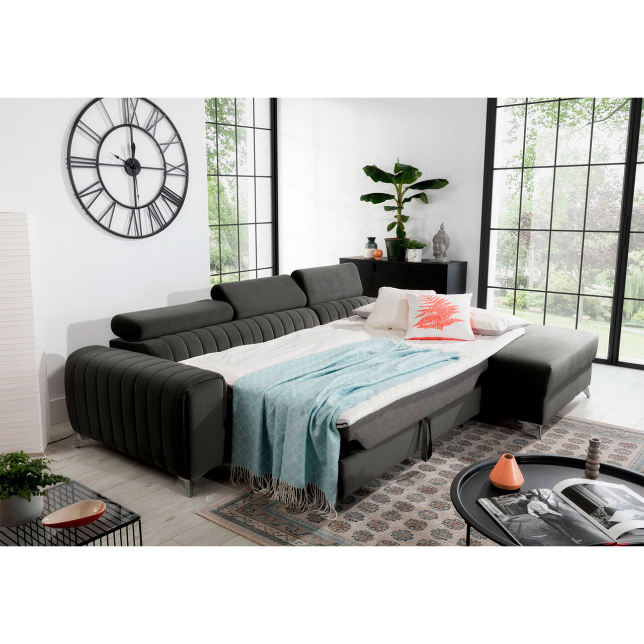Coltar extensibil dreapta 3 locuri ELTAP, RT-05NU, Grayson, 278x205x92 cm, lemn/poliester, gri inchis