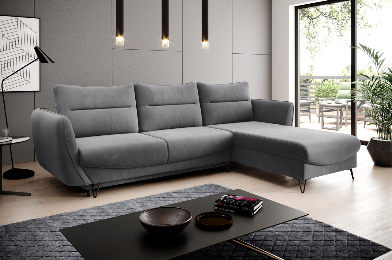 Coltar extensibil dreapta 3 locuri ELTAP, RT-06SO, Silva, 276x201x100 cm, lemn/poliester, gri inchis