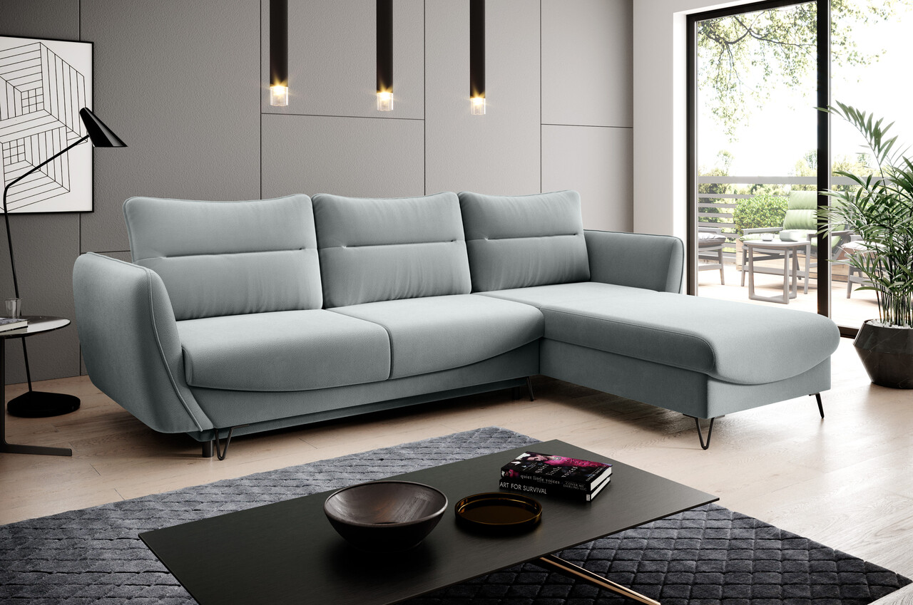 Coltar extensibil dreapta 3 locuri ELTAP, RT-100SAV, Silva, 276x201x100 cm, lemn/poliester, gri deschis