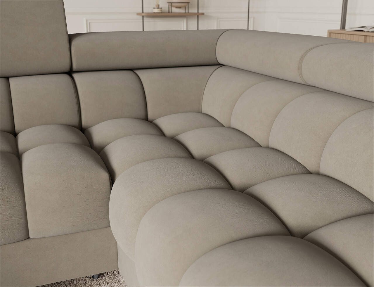 Coltar extensibil dreapta 3 locuri ELTAP, RT-18AU, Fectory, 346x205x93 cm, lemn/poliester, bej
