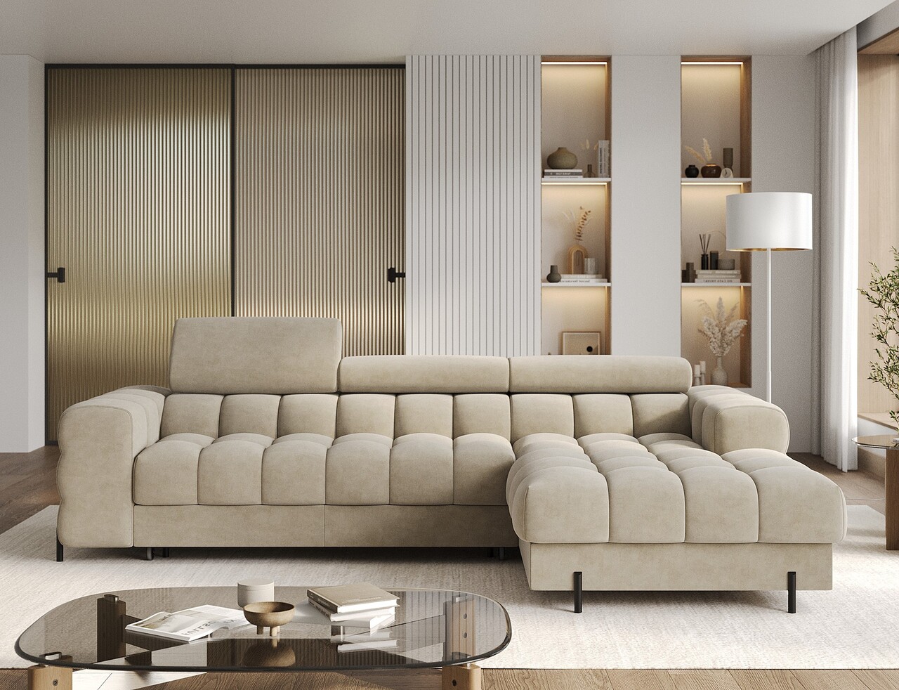 Coltar extensibil dreapta 3 locuri ELTAP, RT-18AU, Felro, 285x181x93 cm, lemn/poliester, bej inchis