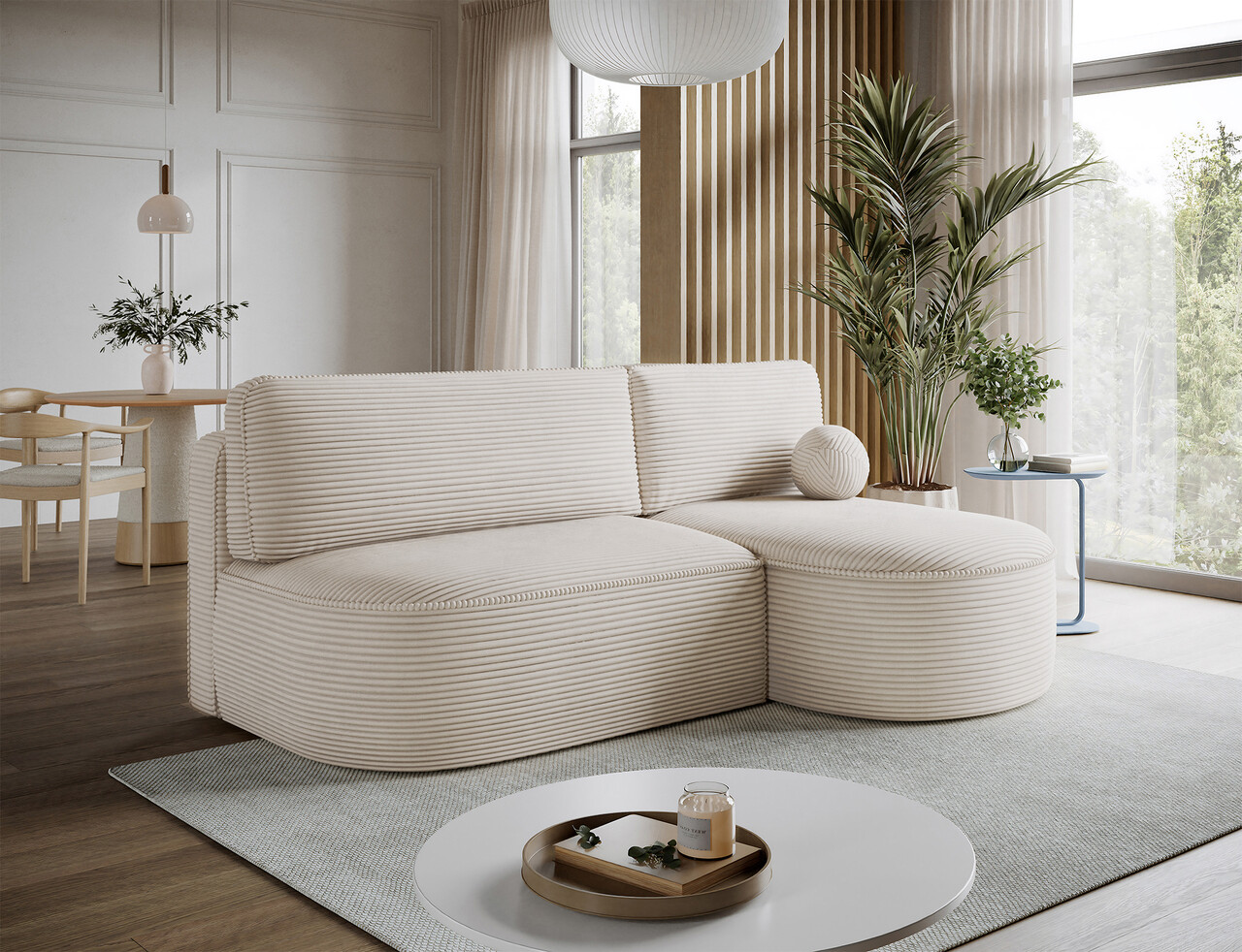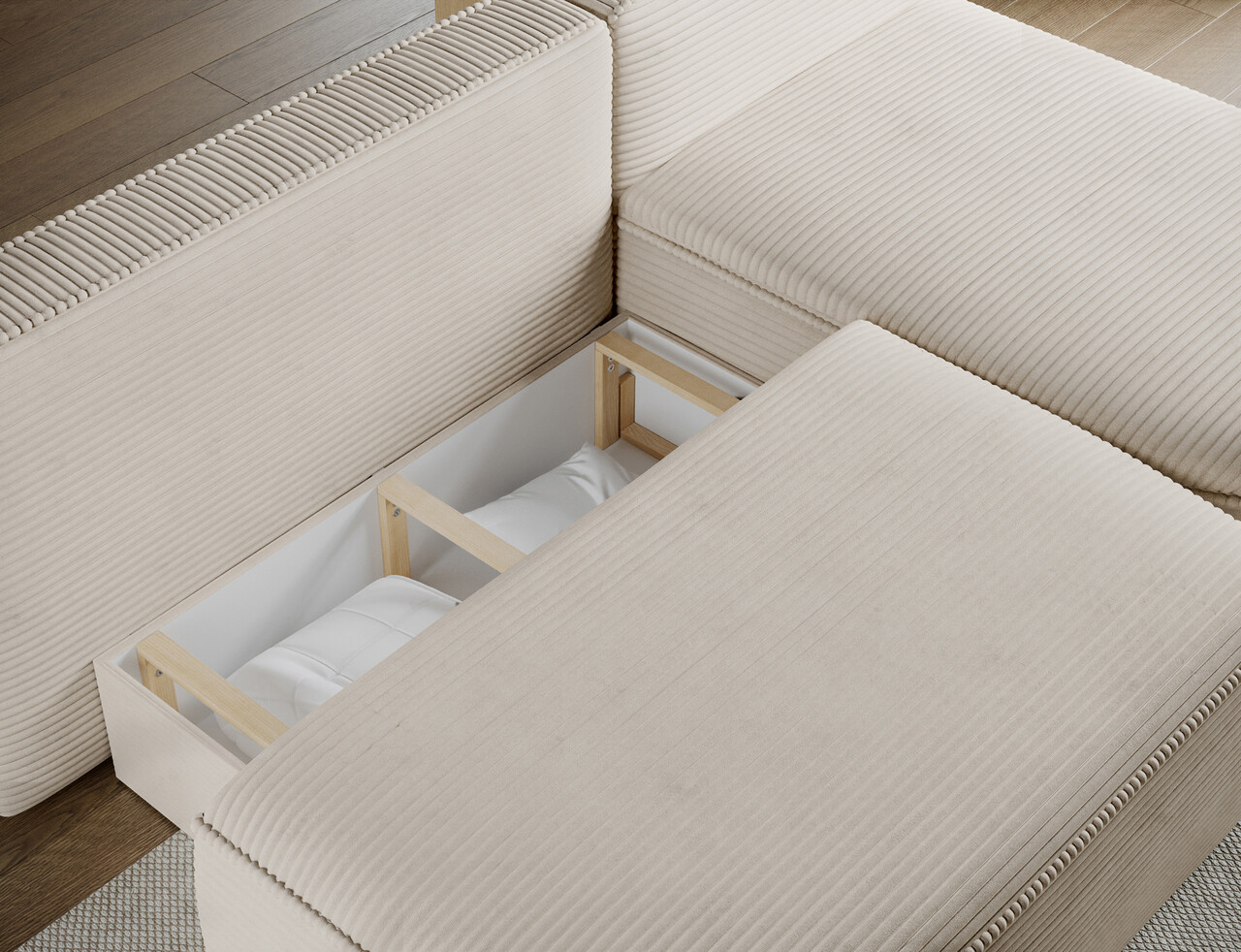 Coltar extensibil dreapta 3 locuri ELTAP, RT-18JAR, Livosa, 220x144x93 cm, lemn/poliester, bej deschis