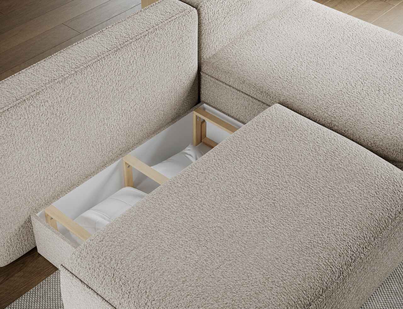 Coltar extensibil dreapta 3 locuri ELTAP, RT-18ROY, Livosa, 220x144x93 cm, lemn/poliester, bej inchis