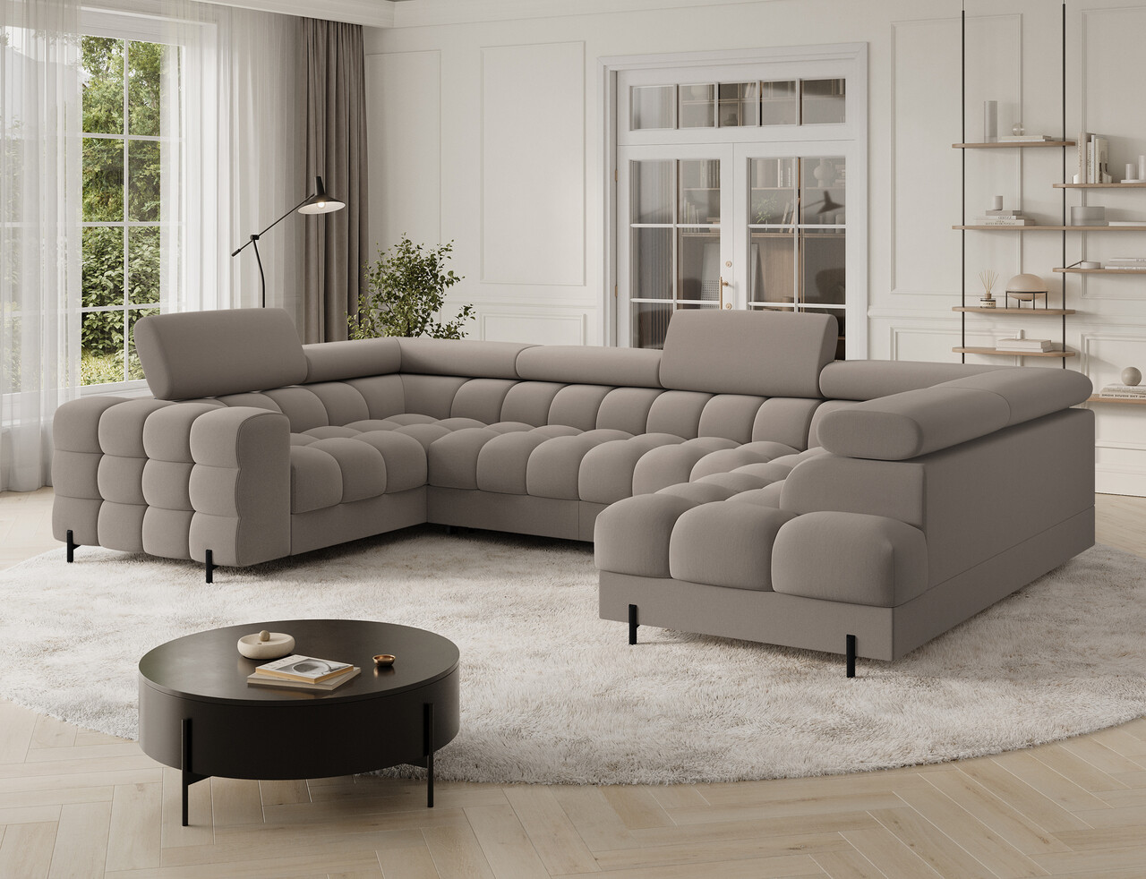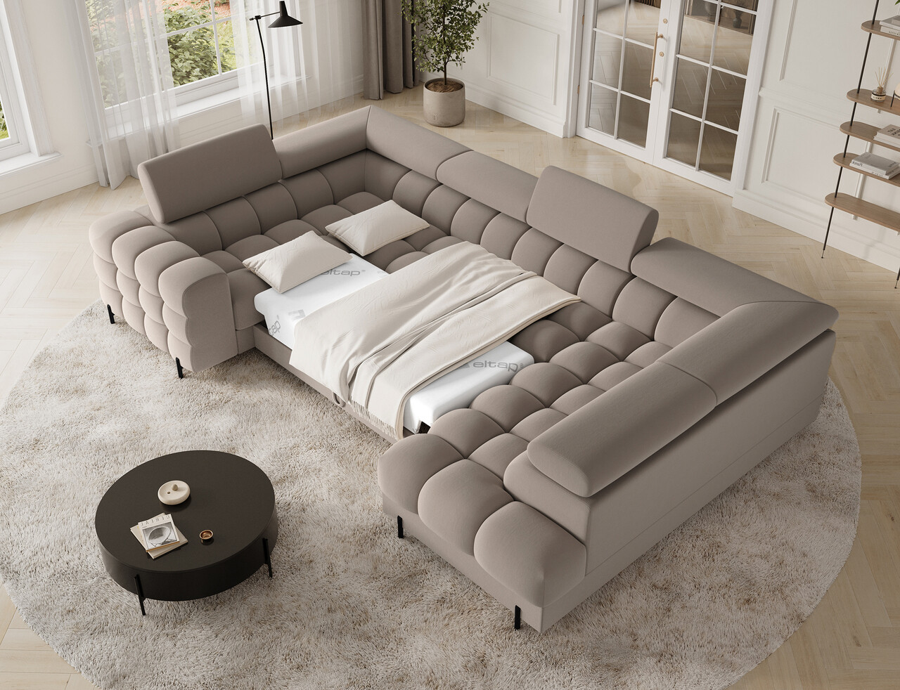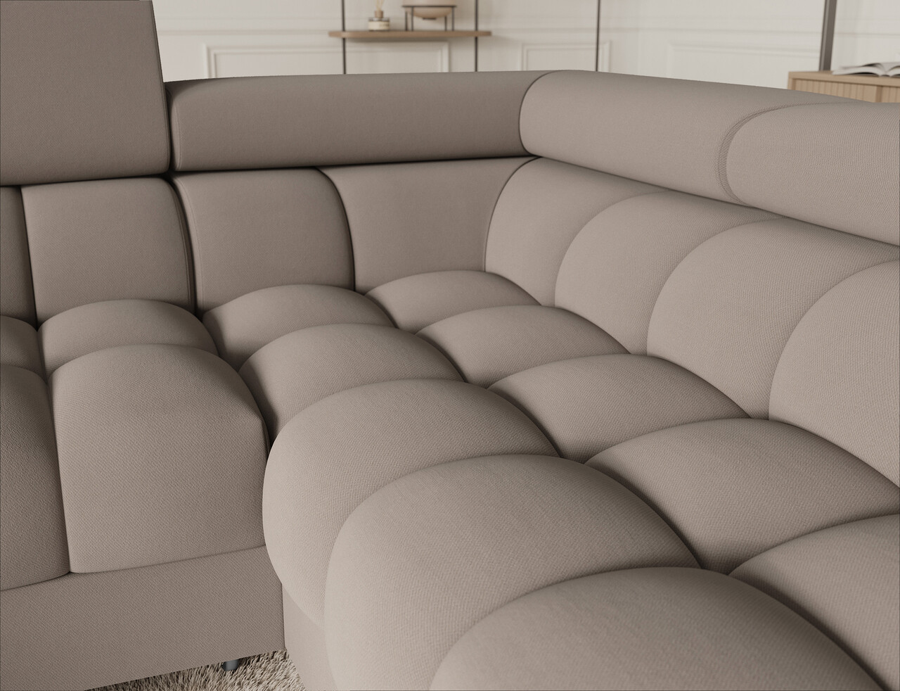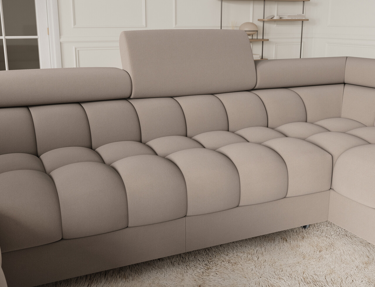 Coltar extensibil dreapta 3 locuri ELTAP, RT-18SO, Fectory, 346x205x93 cm, lemn/poliester, bej inchis