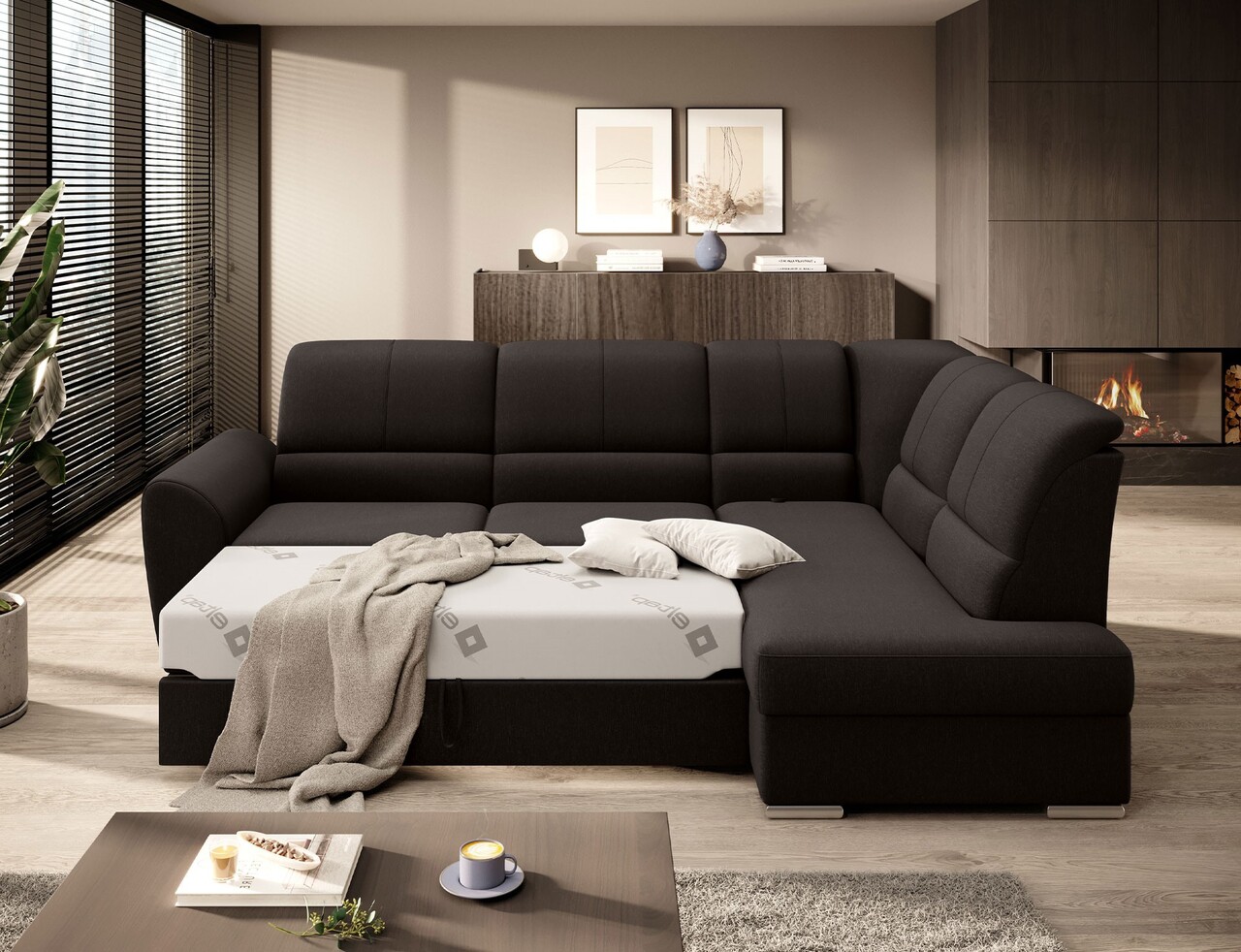 Coltar extensibil dreapta 3 locuri ELTAP, RT-22FL, Siber, 270x186x93 cm, lemn/poliester, maro inchis
