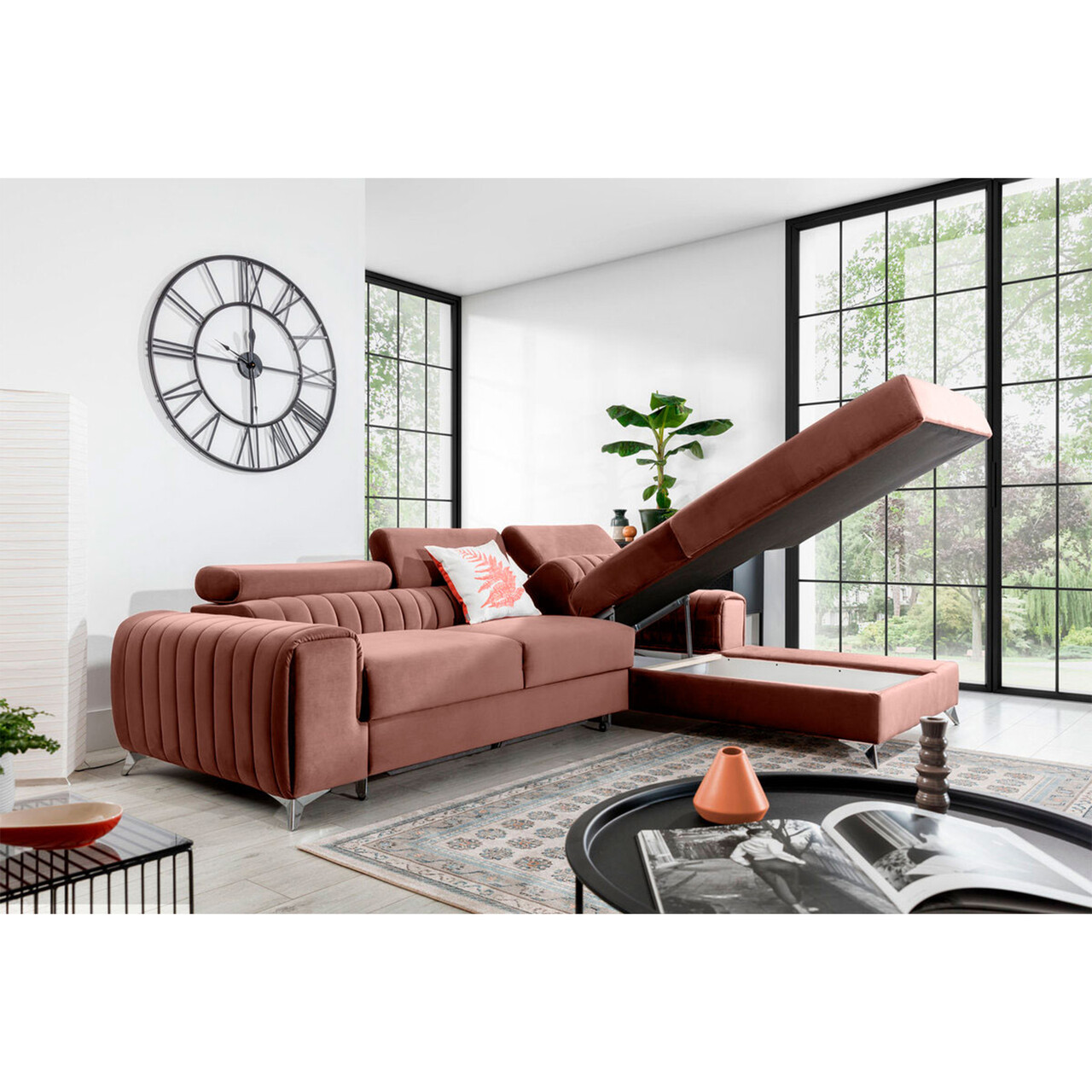 Coltar extensibil dreapta 3 locuri ELTAP, RT-24NU, Grayson, 278x205x92 cm, lemn/poliester, roz