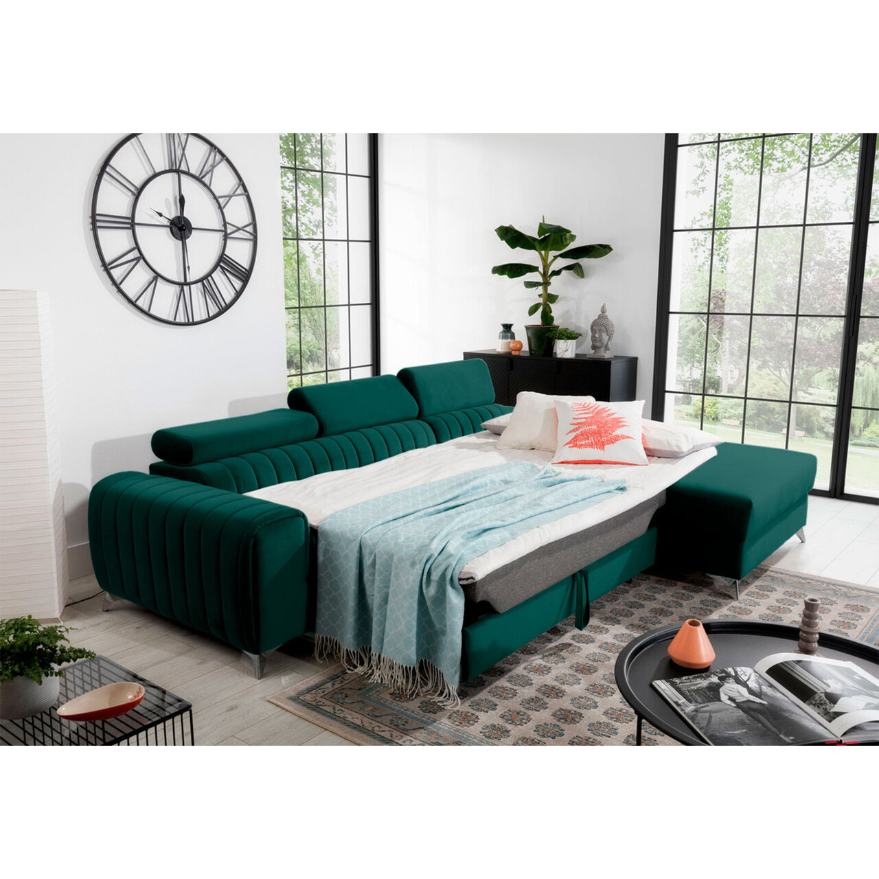 Coltar extensibil dreapta 3 locuri ELTAP, RT-38VE, Grayson, 278x205x92 cm, lemn/poliester, verde inchis