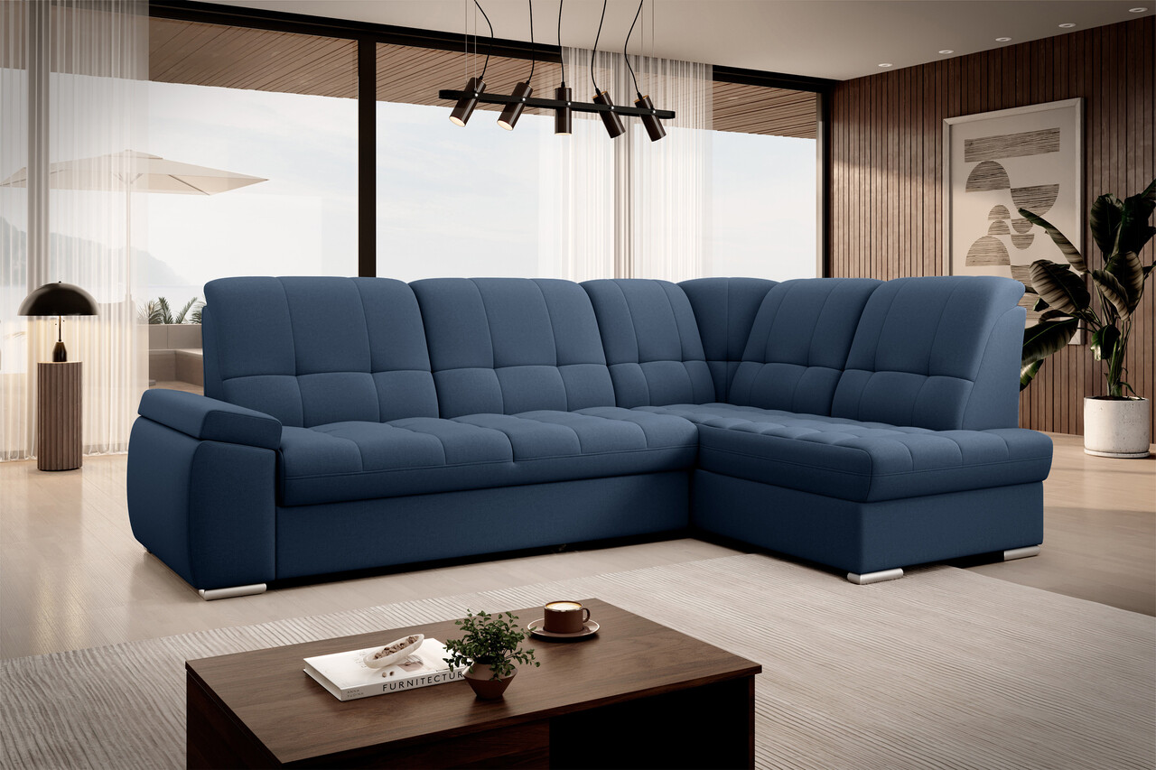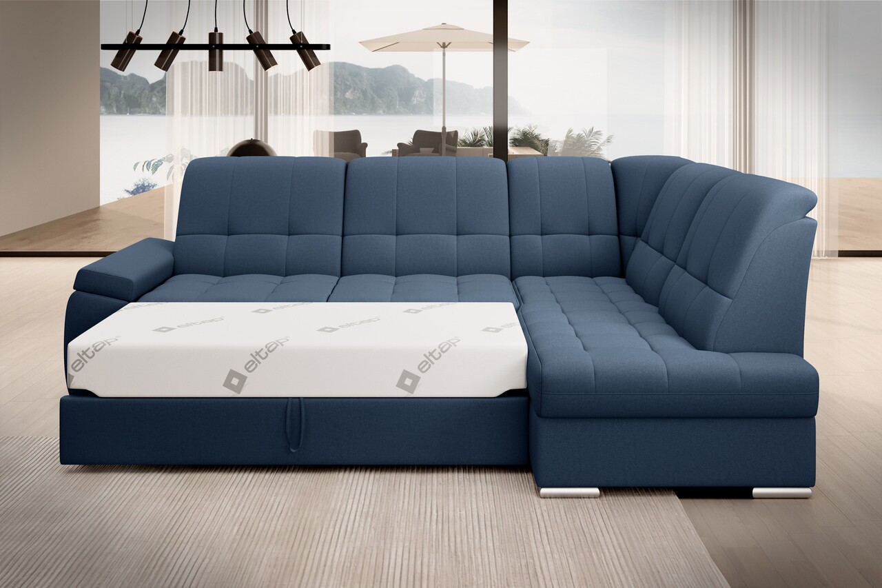 Coltar extensibil dreapta 3 locuri ELTAP, RT-40GO, Sado, 272x192x95 cm, lemn/poliester, albastru