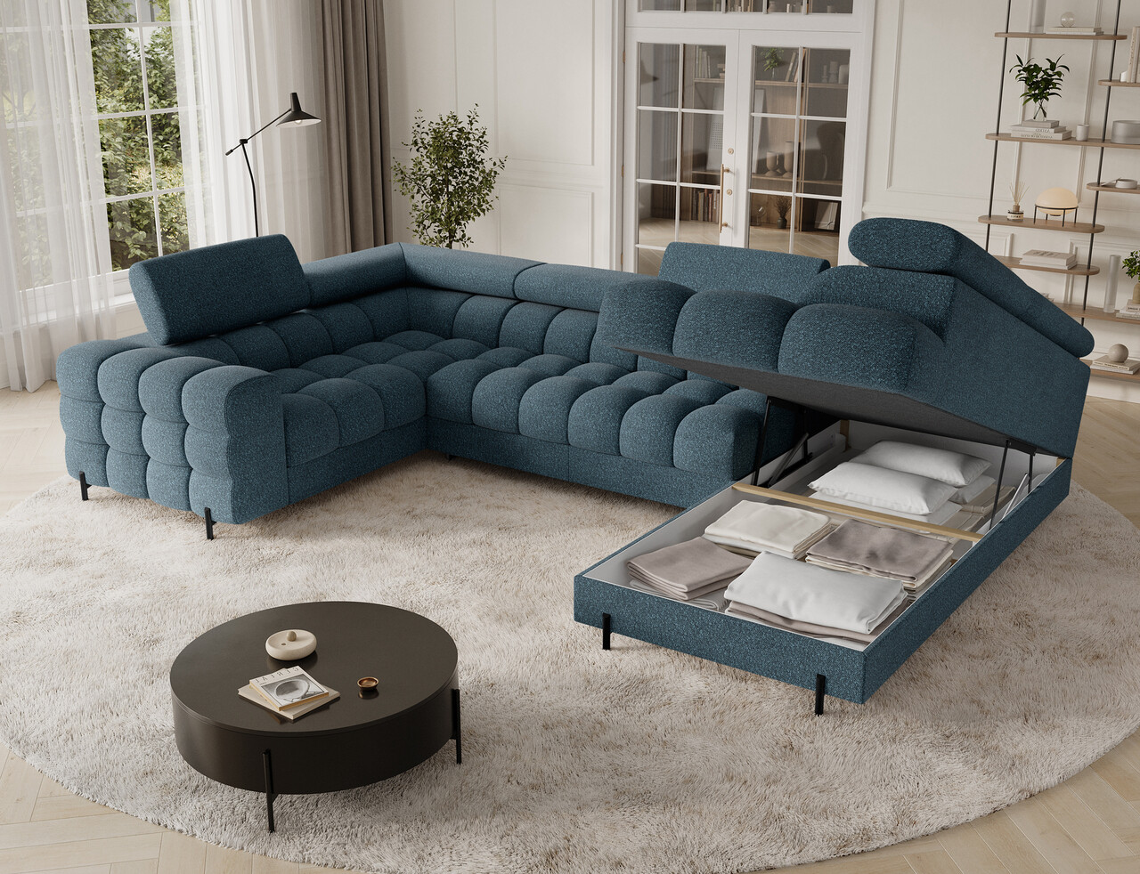 Coltar extensibil dreapta 3 locuri ELTAP, RT-40JAF, Fectory, 346x205x93 cm, lemn/poliester, albastru