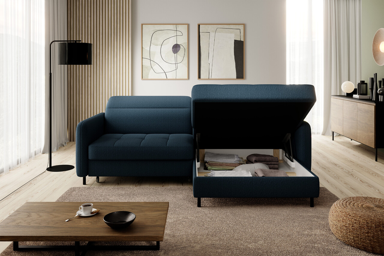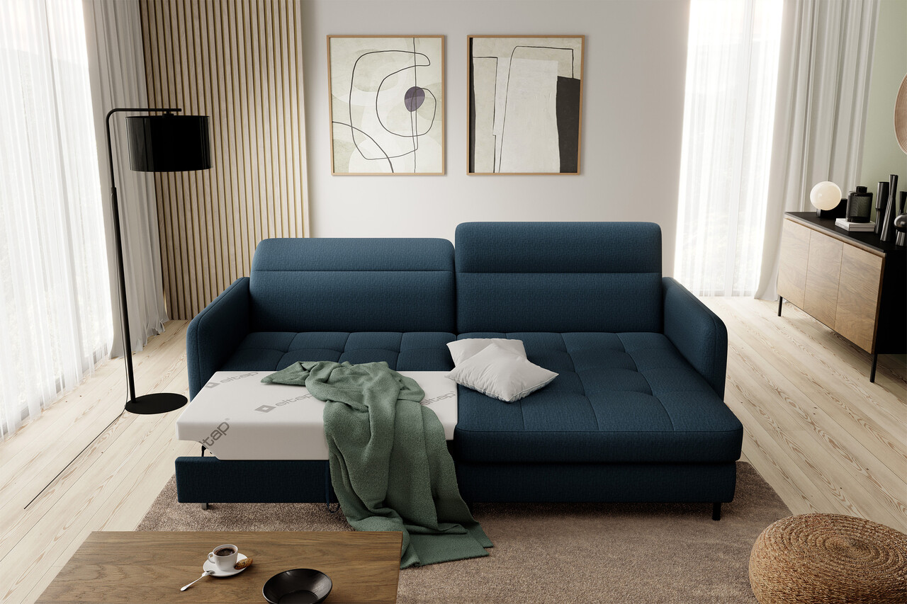 Coltar extensibil dreapta 3 locuri ELTAP, RT-40MAN, Gomsi, 228x165x100 cm, lemn/poliester, albastru inchis