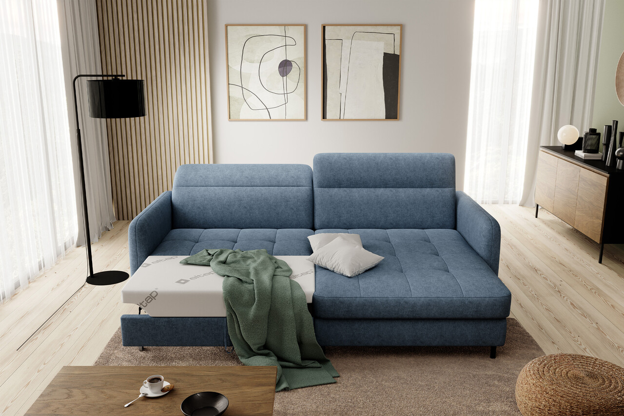 Coltar extensibil dreapta 3 locuri ELTAP, RT-40RAQ, Gomsi, 228x165x100 cm, lemn/poliester, albastru
