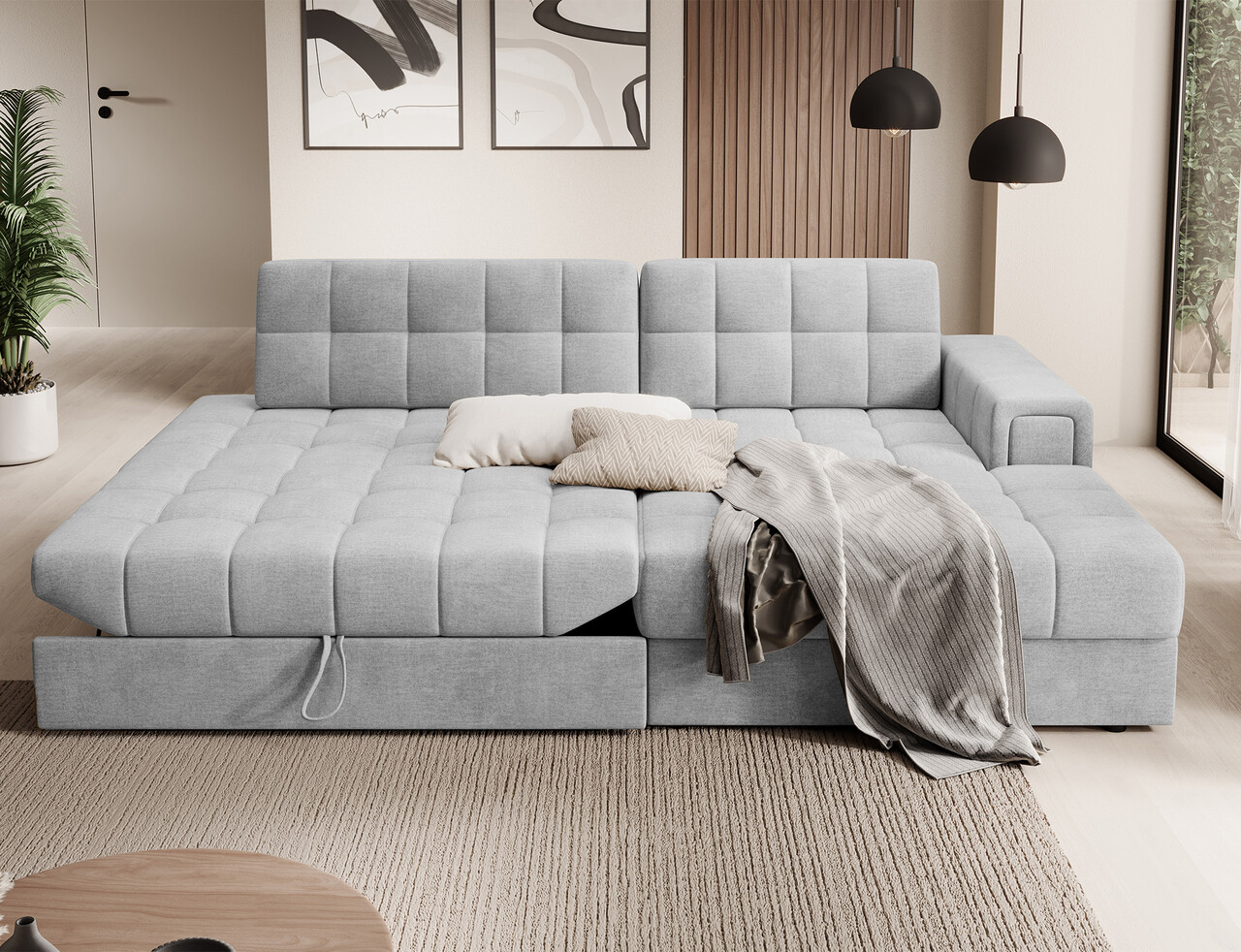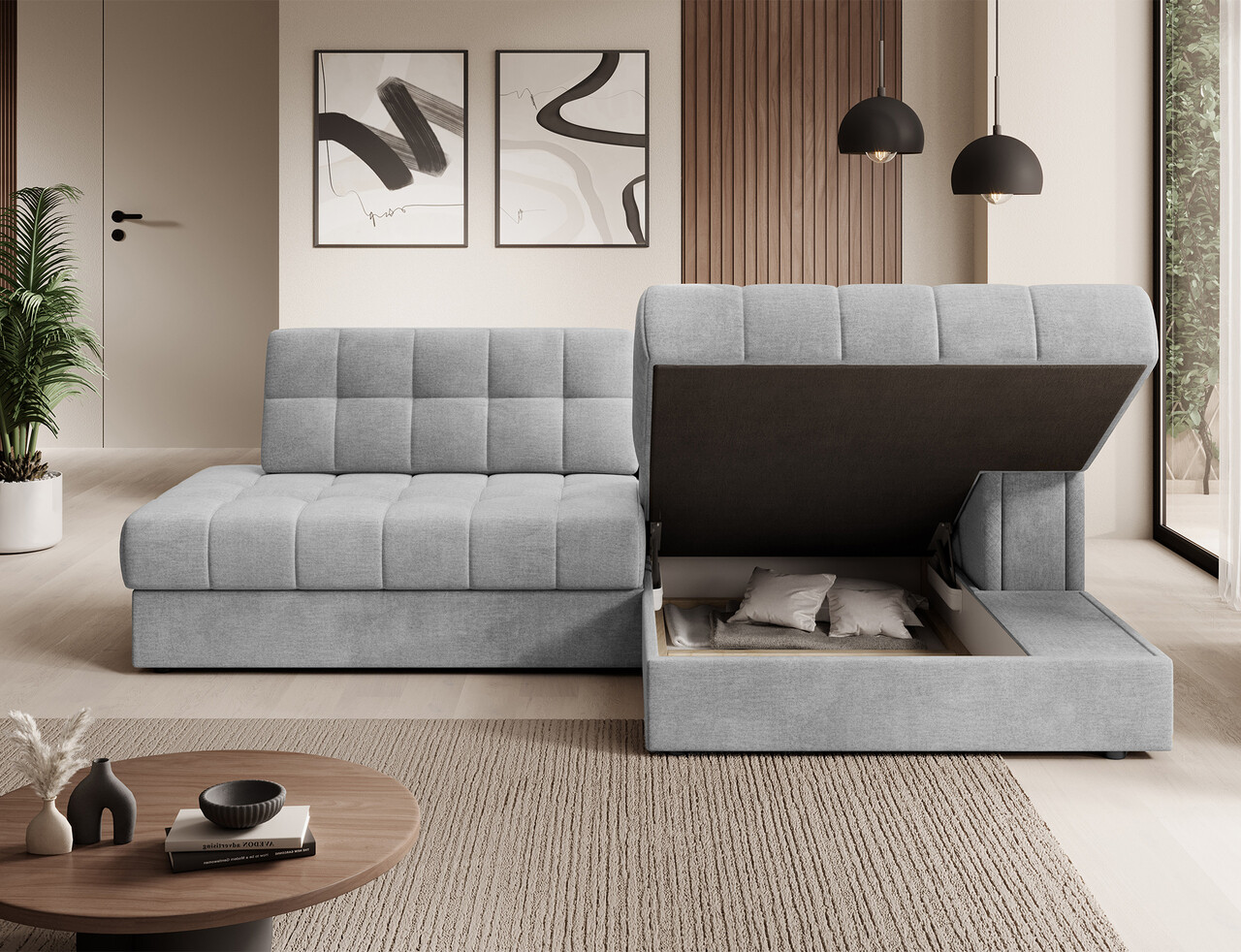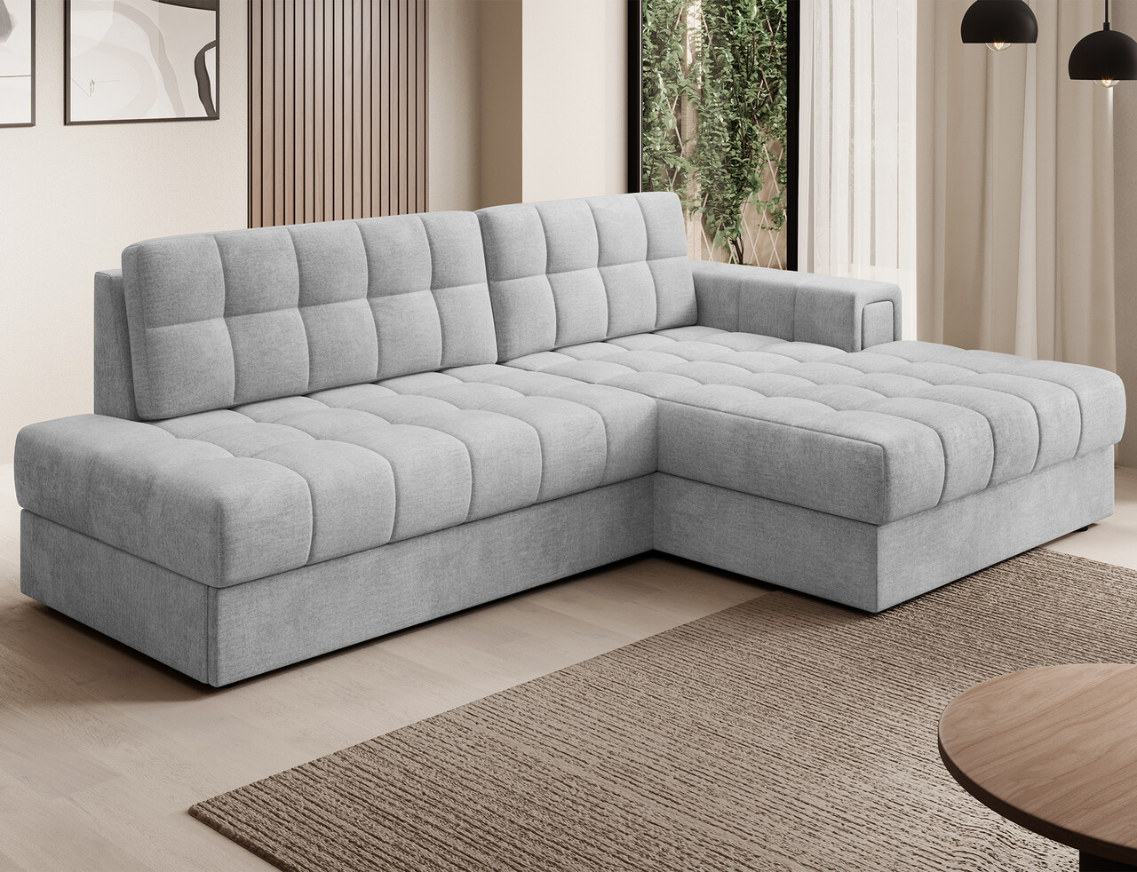 Coltar extensibil dreapta 3 locuri ELTAP, RT-84MO, Blezalt, 240x150x82 cm, lemn/poliester, gri deschis