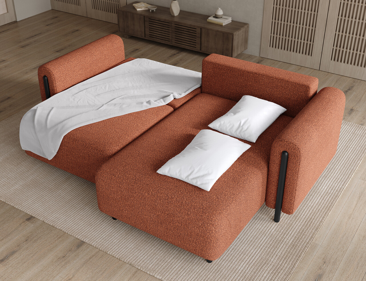 Coltar extensibil dreapta 3 locuri ELTAP, RT-BL-30JAF, Acossta, 244x154x95 cm, lemn/poliester, caramiziu/negru