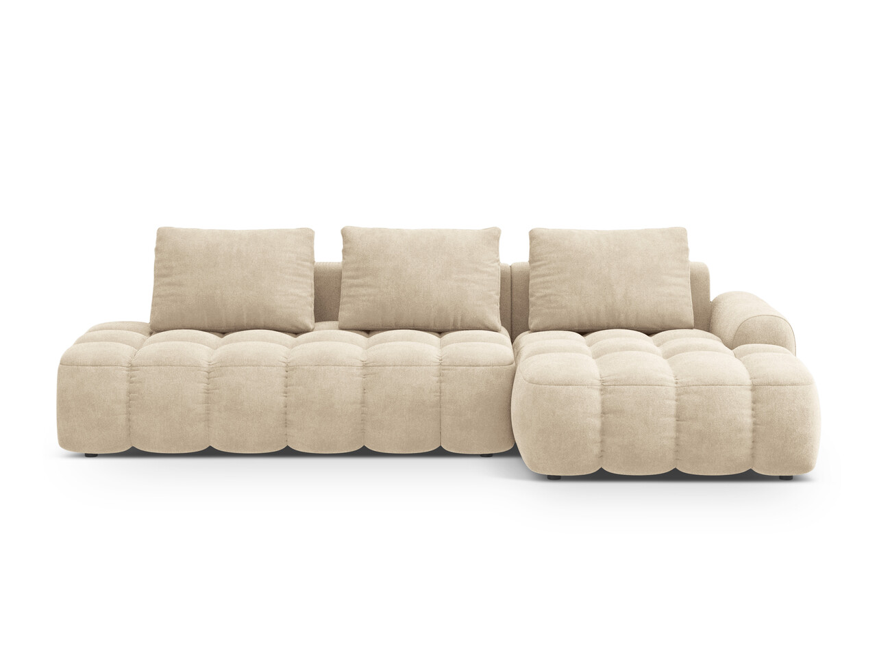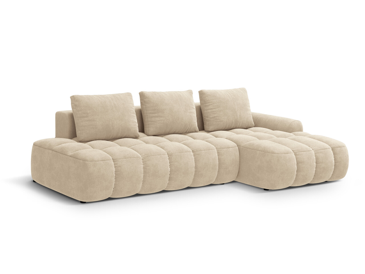 Coltar extensibil dreapta 3 locuri, Linz, Cosmopolitan Design, 275x142x84 cm, cotiera stanga, catifea, bej deschis
