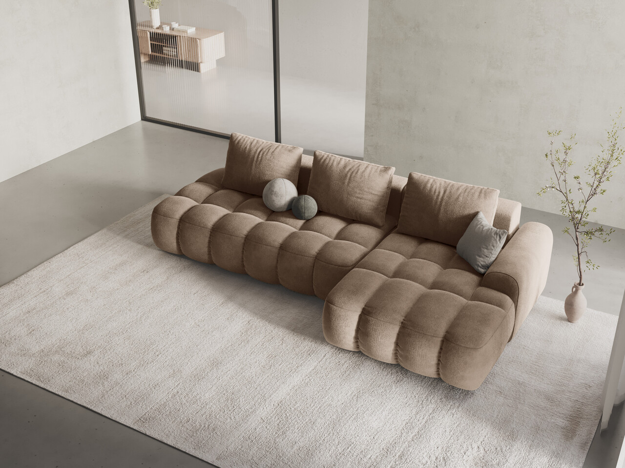 Coltar extensibil dreapta 3 locuri, Linz, Cosmopolitan Design, 275x142x84 cm, cotiera stanga, catifea, bej inchis