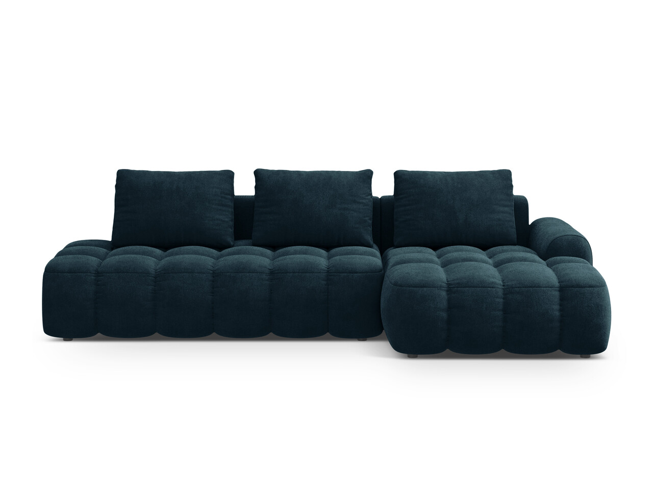 Coltar extensibil dreapta 3 locuri, Linz, Cosmopolitan Design, 275x142x84 cm, cotiera stanga, catifea, albastru petrol inchis