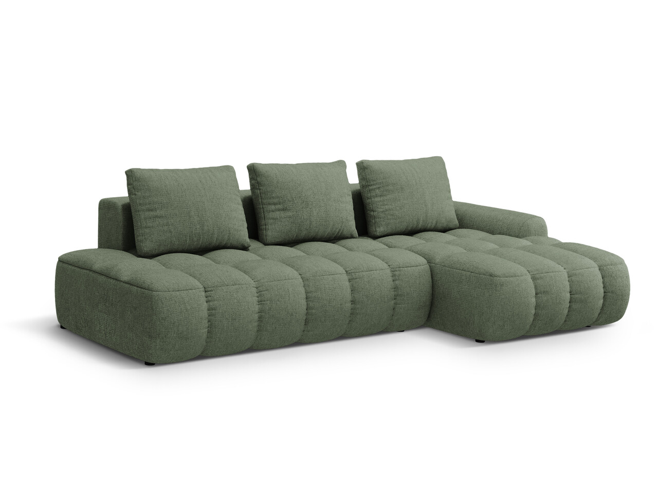 Coltar extensibil dreapta 3 locuri, Linz, Cosmopolitan Design, 275x142x84 cm, cotiera stanga, tesatura structurata, verde oliv inchis