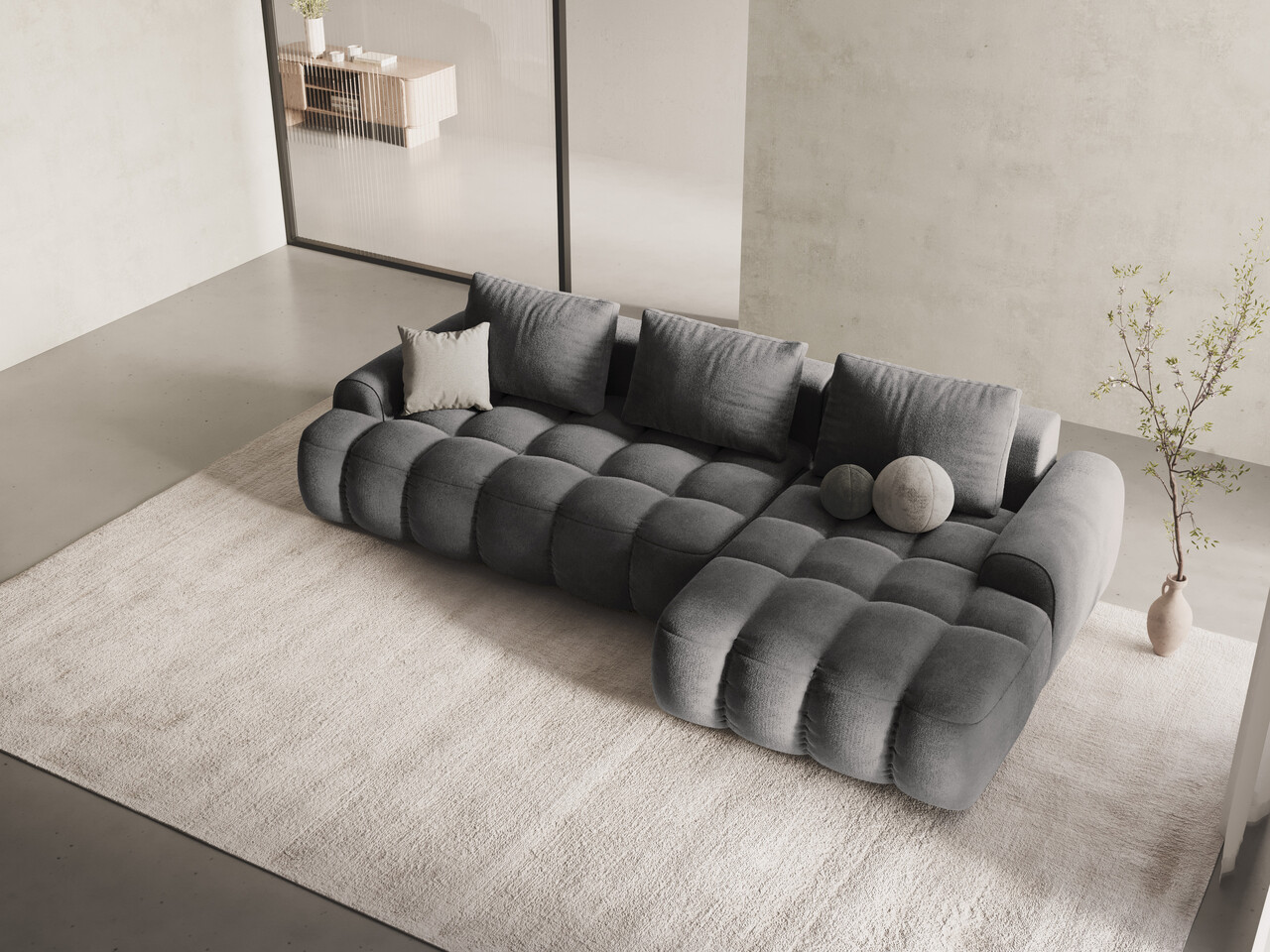 Coltar extensibil dreapta 3 locuri, Linz, Cosmopolitan Design, 275x142x84 cm, catifea, gri