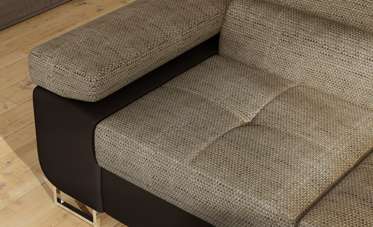 Pentru un confort maxim, coltarul Anton este dotat cu tetiere inalte si reglabile, brate late de 28 cm si picioare metalice elegante, cu o inaltime de 9 cm, asigurand astfel un design modern si stabilitate optima.