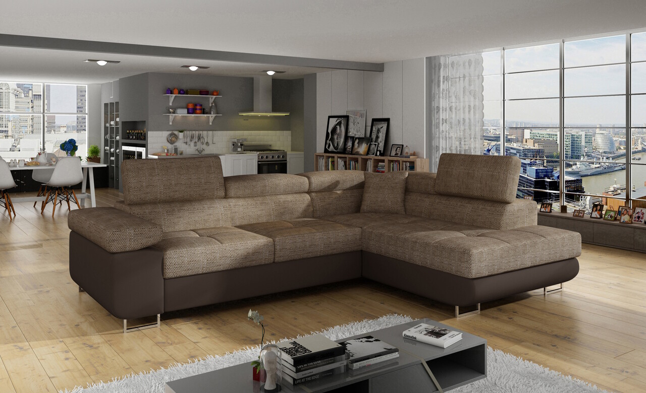 Coltar extensibil dreapta 4 locuri, ELTAP, Anton, 272x203x85 cm, lemn/poliester, bej/maro