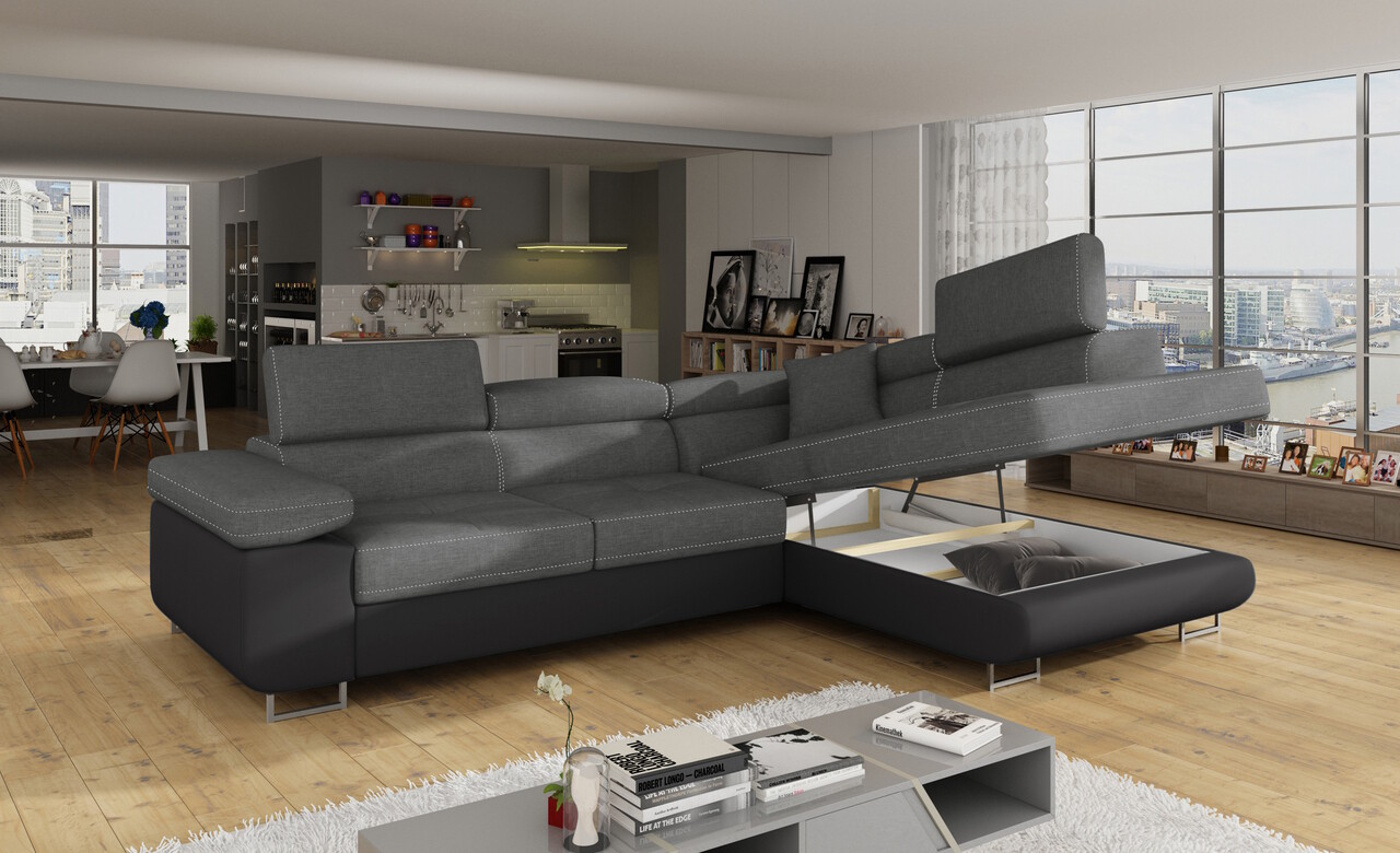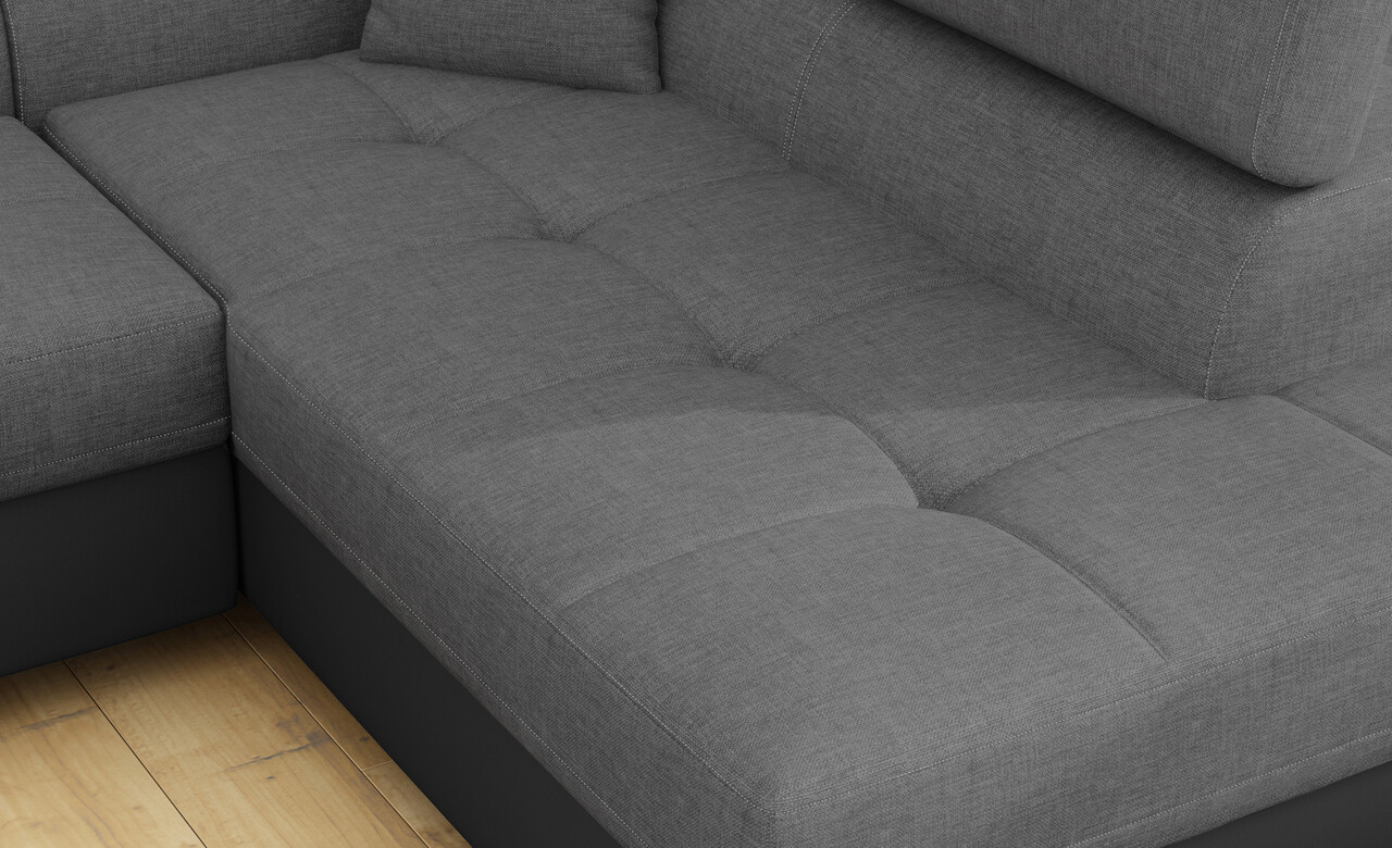 Coltar extensibil dreapta 4 locuri, ELTAP, Anton, 272x203x85 cm, lemn/poliester, gri/negru