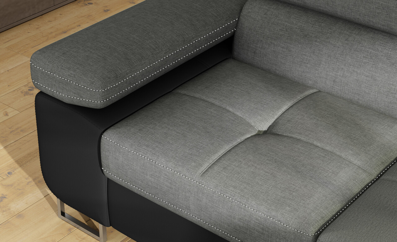 Pentru un confort maxim, coltarul Anton este dotat cu tetiere inalte si reglabile, brate late de 28 cm si picioare metalice elegante, cu o inaltime de 9 cm, asigurand astfel un design modern si stabilitate optima.