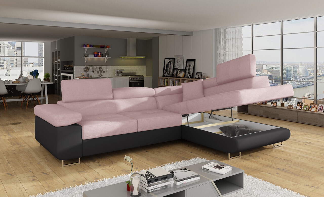 Coltar extensibil dreapta 4 locuri, ELTAP, Anton, 272x203x85 cm, lemn/poliester, roz/negru