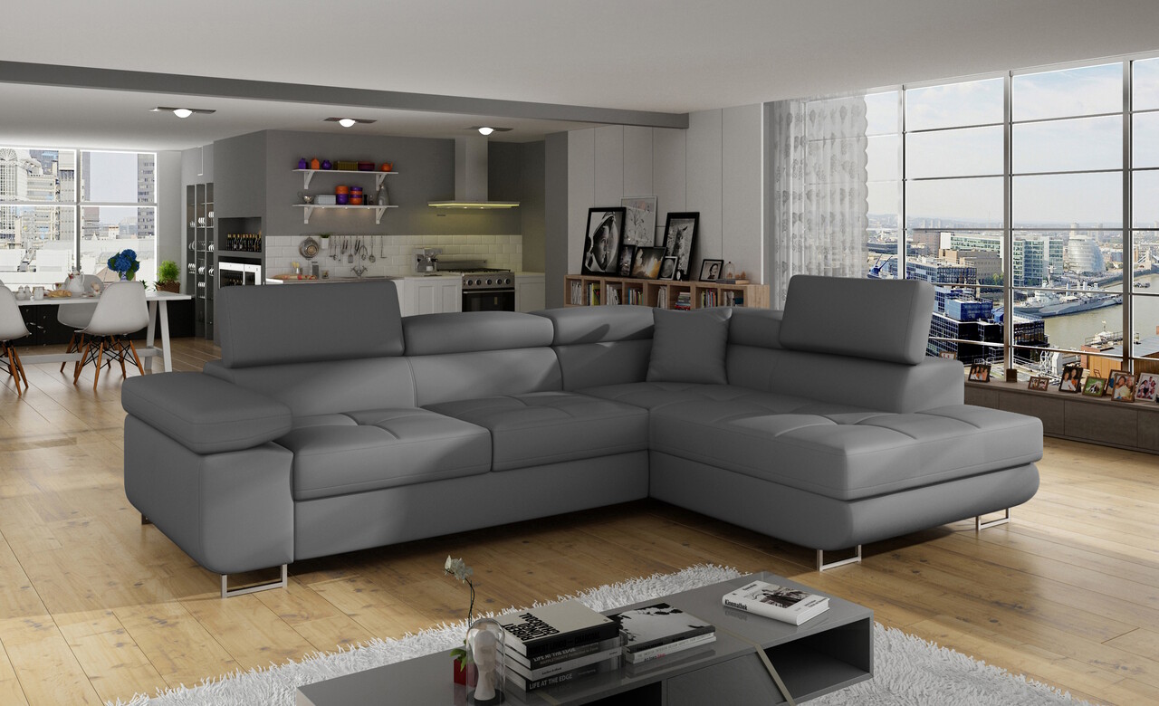 Coltar extensibil dreapta 4 locuri, ELTAP, Anton, 272x203x85 cm, lemn/poliester, gri inchis/gri inchis