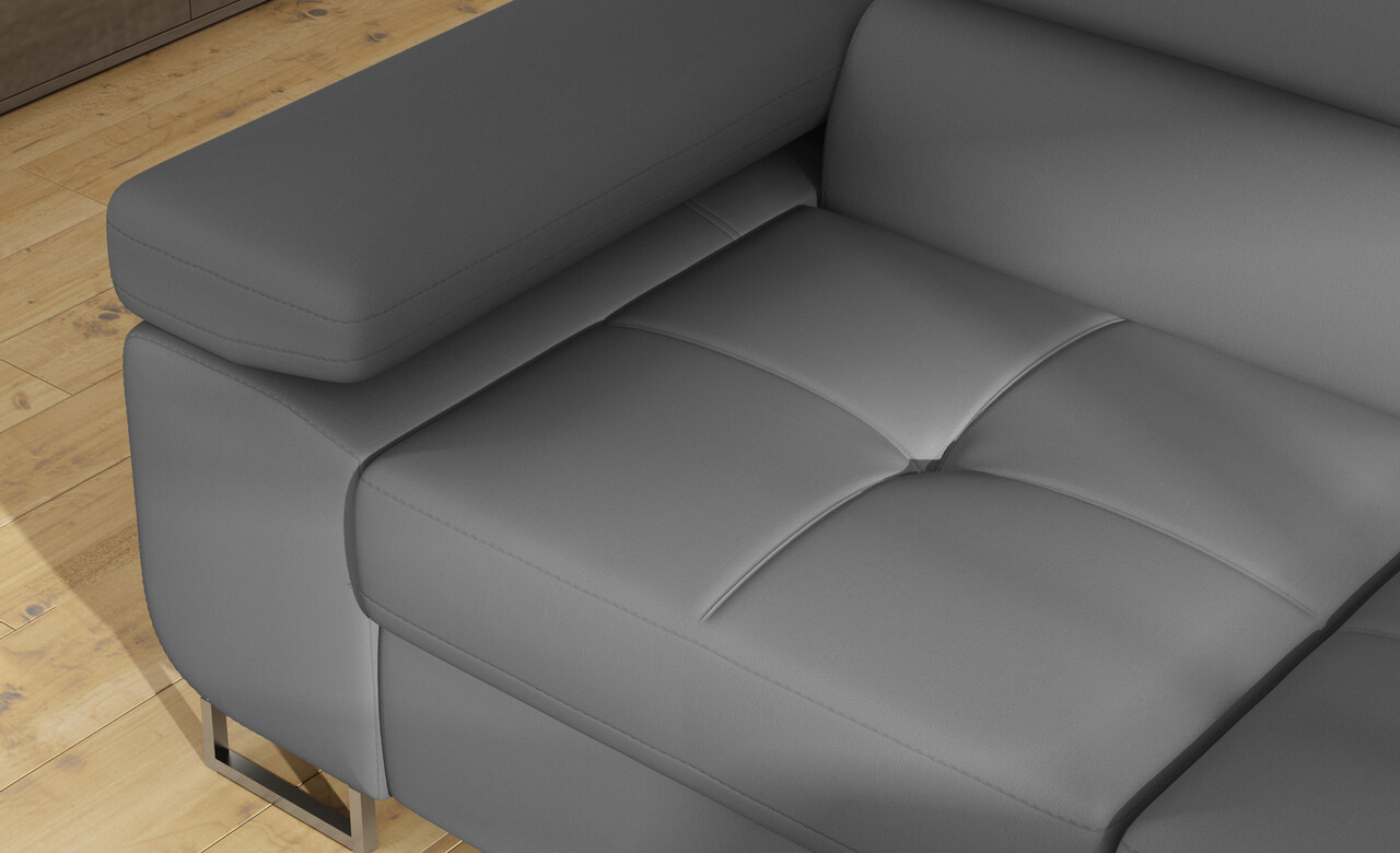 Pentru un confort maxim, coltarul Anton este dotat cu tetiere inalte si reglabile, brate late de 28 cm si picioare metalice elegante, cu o inaltime de 9 cm, asigurand astfel un design modern si stabilitate optima.