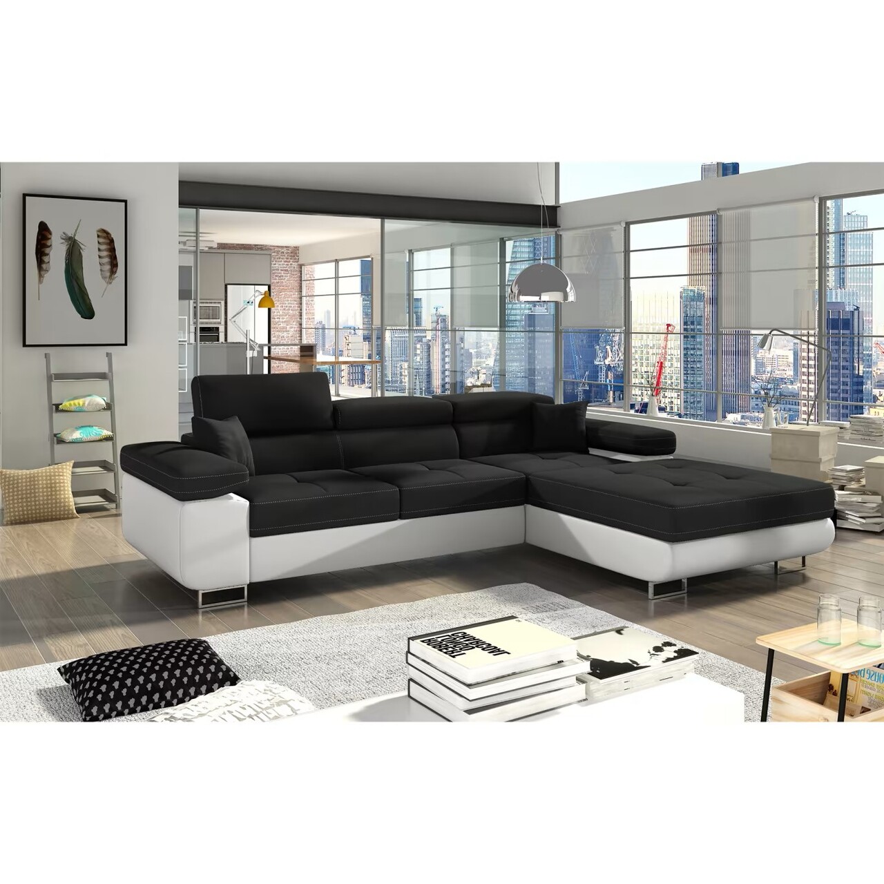 Coltar extensibil dreapta 4 locuri ELTAP, Armd-05, Armando, 289x203x85 cm, lemn/poliester, negru/alb