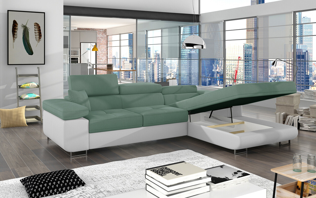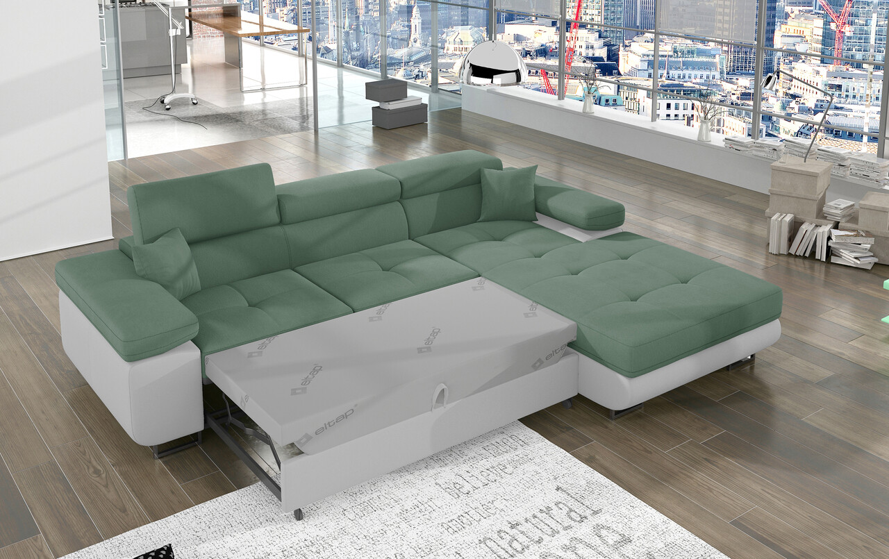Coltar extensibil dreapta 4 locuri ELTAP, Armd-09, Armando, 289x203x85 cm, lemn/poliester, verde/alb
