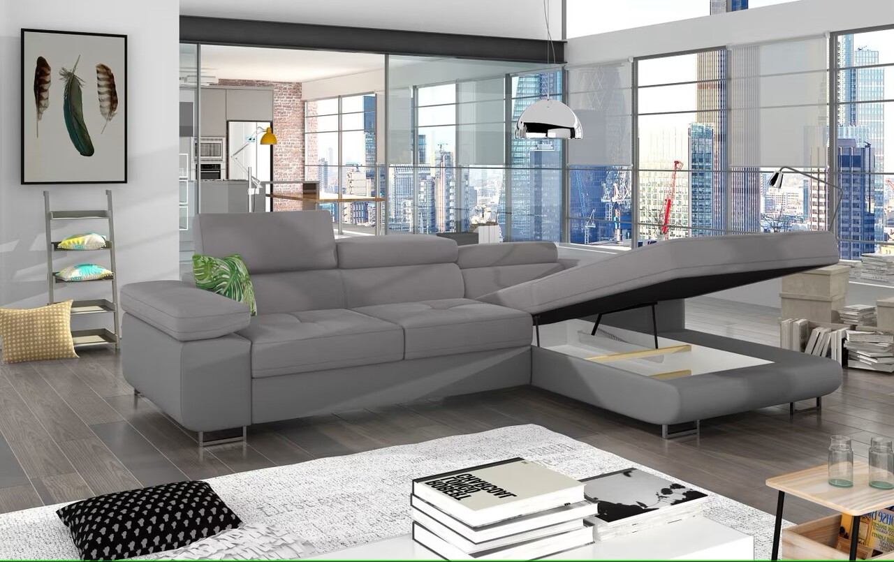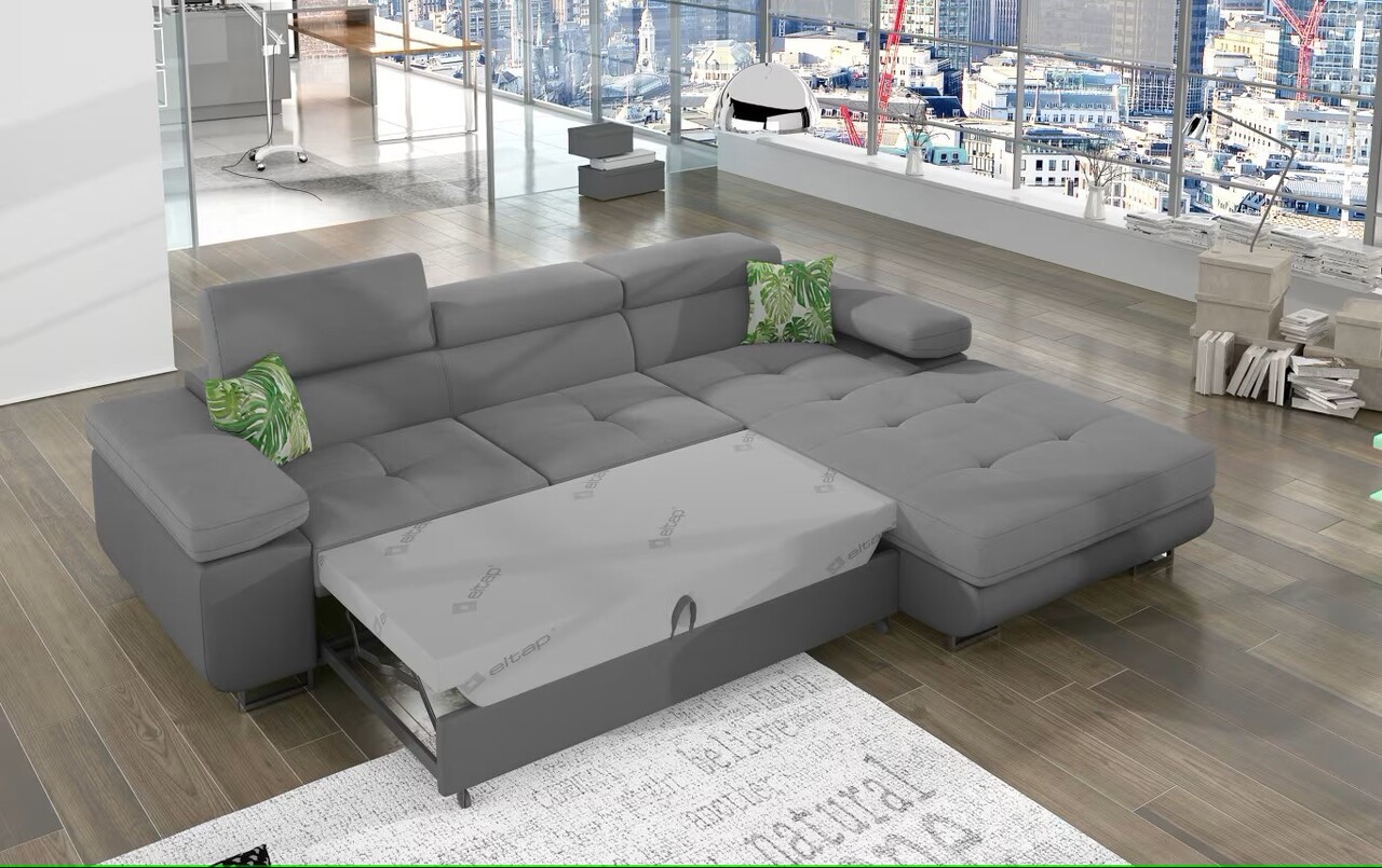 Coltar extensibil dreapta 4 locuri ELTAP, Armd-11, Armando, 289x203x85 cm, lemn/poliester, gri deschis/gri inchis