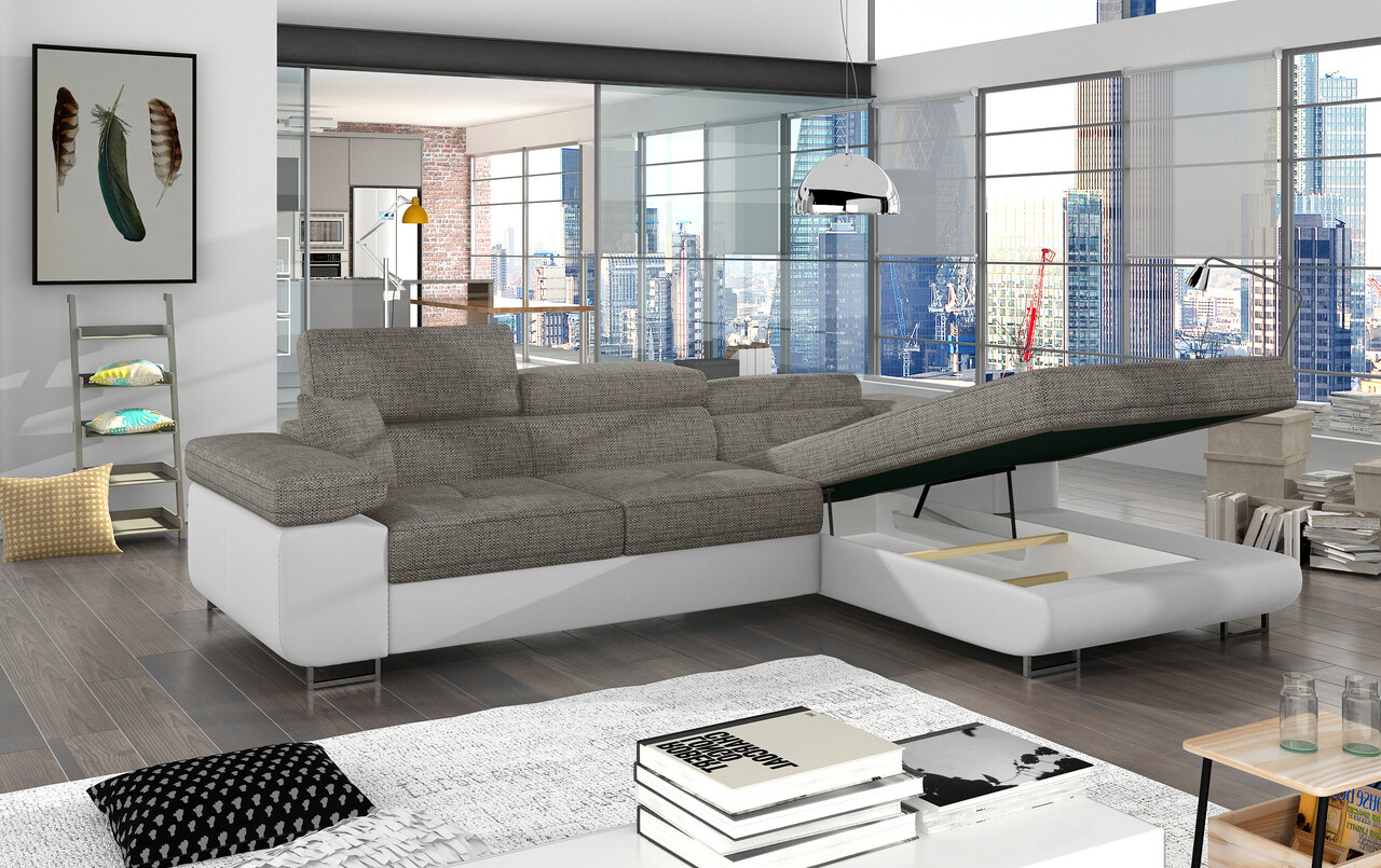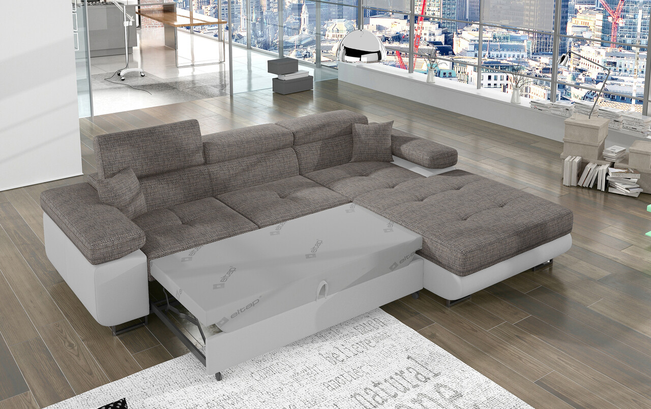 Coltar extensibil dreapta 4 locuri ELTAP, Armd-32, Armando, 289x203x85 cm, lemn/poliester, gri/alb