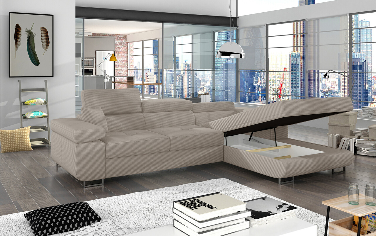 Coltar extensibil dreapta 4 locuri ELTAP, Armd-369, Armando, 289x203x85 cm, lemn/poliester, bej