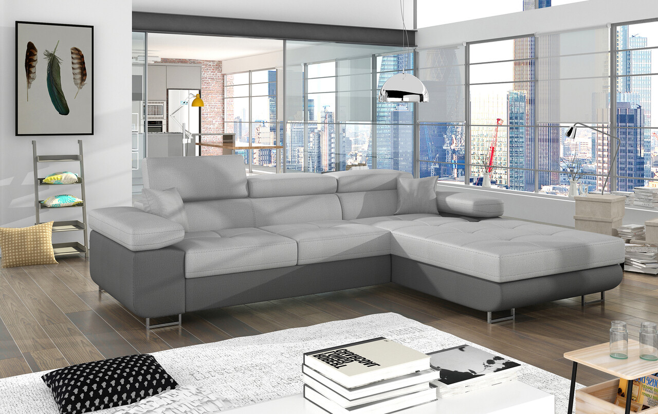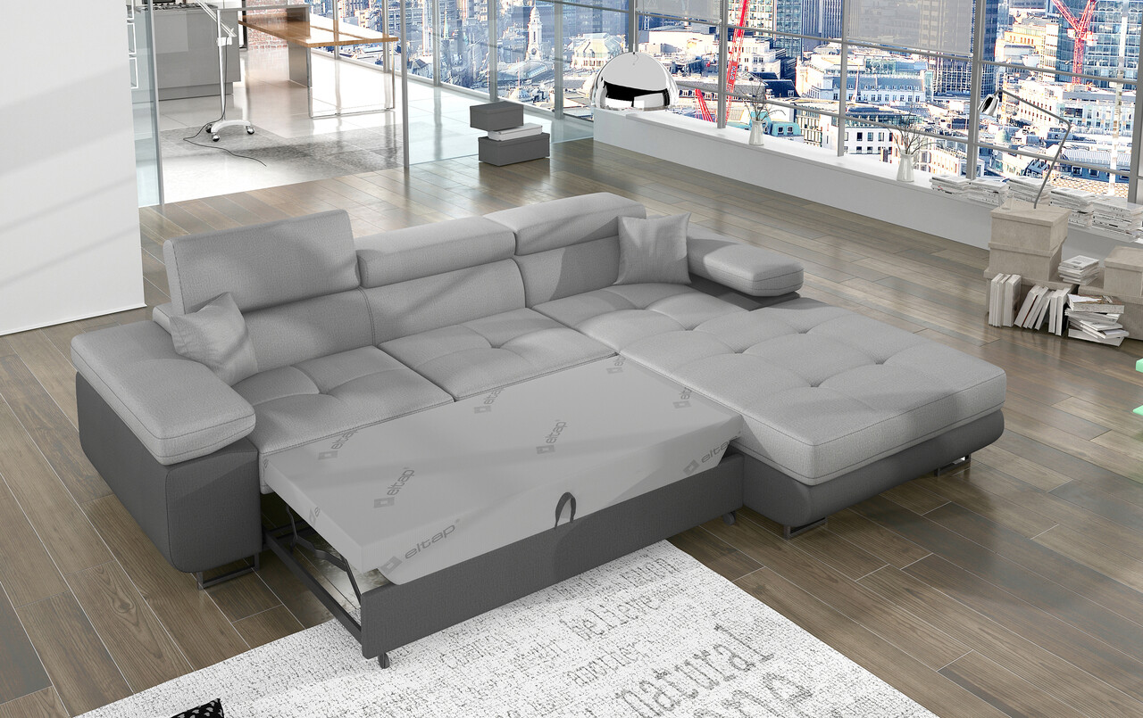 Coltar extensibil dreapta 4 locuri ELTAP, Armd-43, Armando, 289x203x85 cm, lemn/poliester, gri deschis/gri