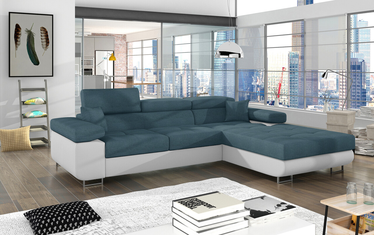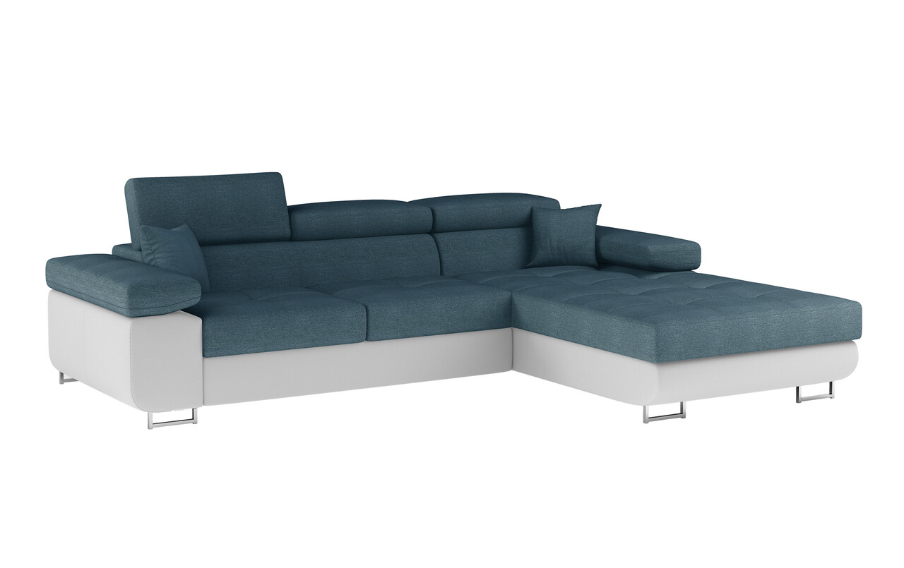 Coltar extensibil dreapta 4 locuri ELTAP, Armd-45, Armando, 289x203x85 cm, lemn/poliester, albastru/alb